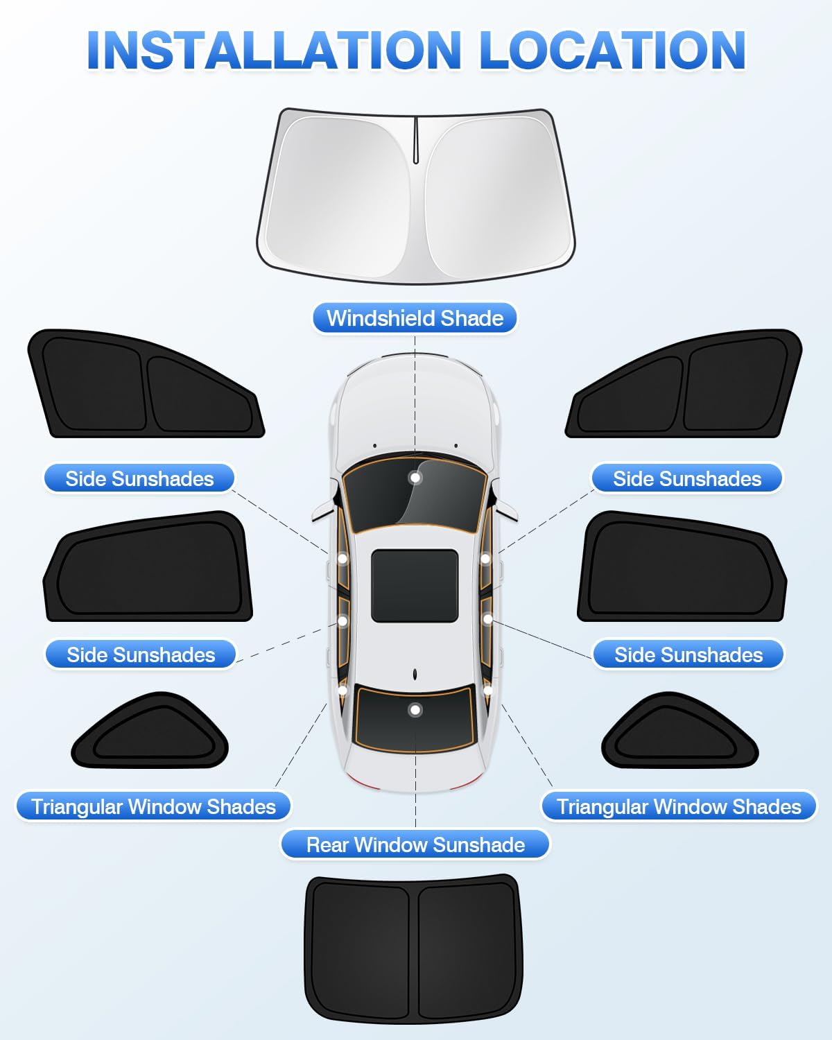 - 【All-Round Protection】Our window sun blocker kit is perfect for blocking harmful UV rays from damaging your car interior. The window shades also do a good job of protecting babies and kids from sunshine, and reducing car interior temperature. Great accessories for your car!