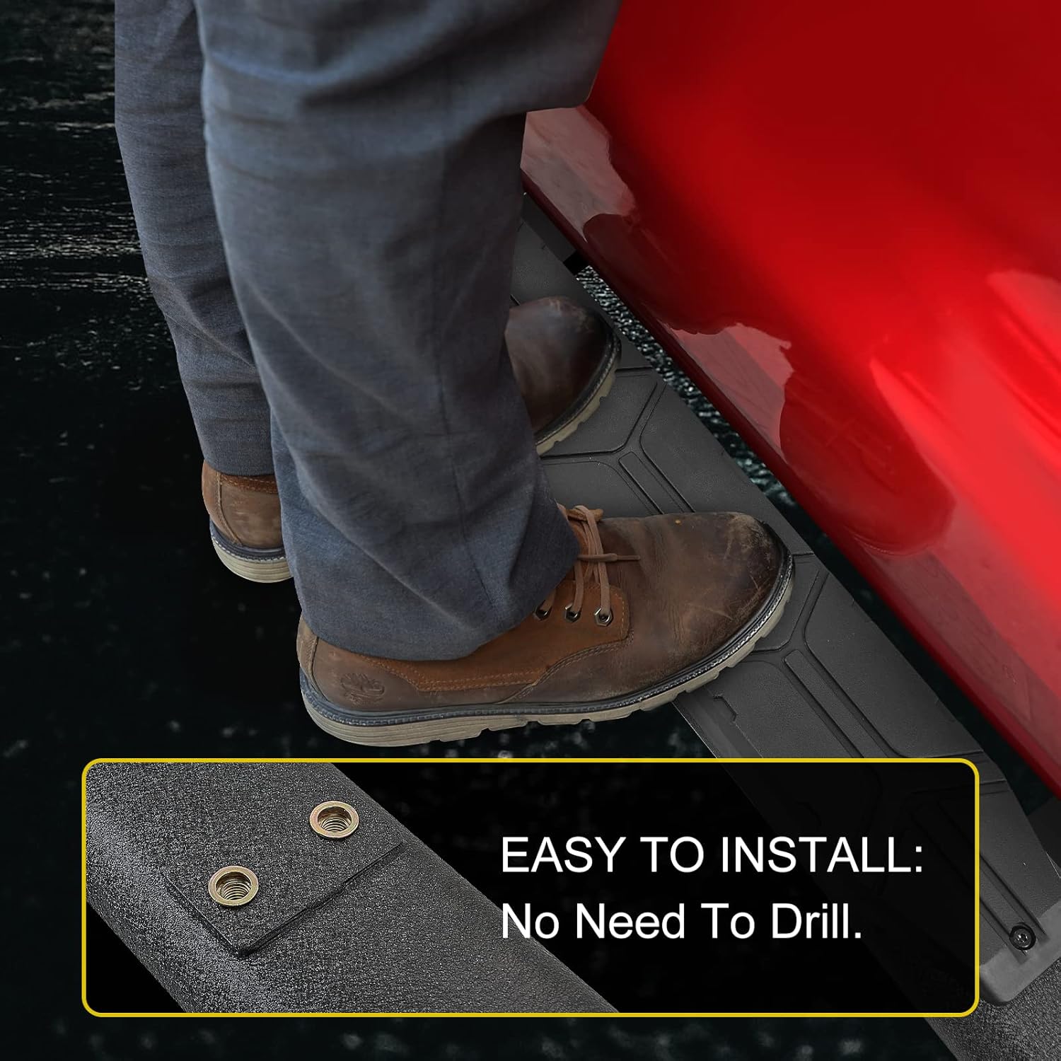 - APPEARANCE: The Curved Oval Design of The Side Steps Increases The Proper Spacing Between The Step Bar and The Truck, Makes The Truck More Compatible with The Side Steps.