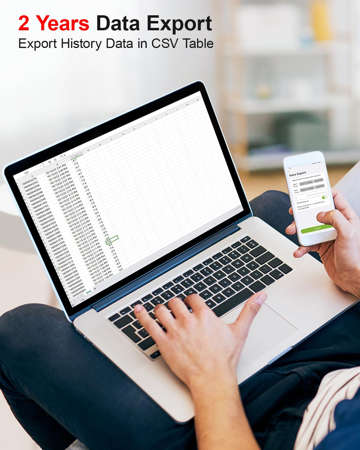 - 2-Year Data Export & 2-Year Battery Life: The wifi thermometer supports online viewing of clear graphs and data export for 2 years. The fridge temperature sensor built-in 1800mAh rechargeable lithium battery with up to two years of battery life