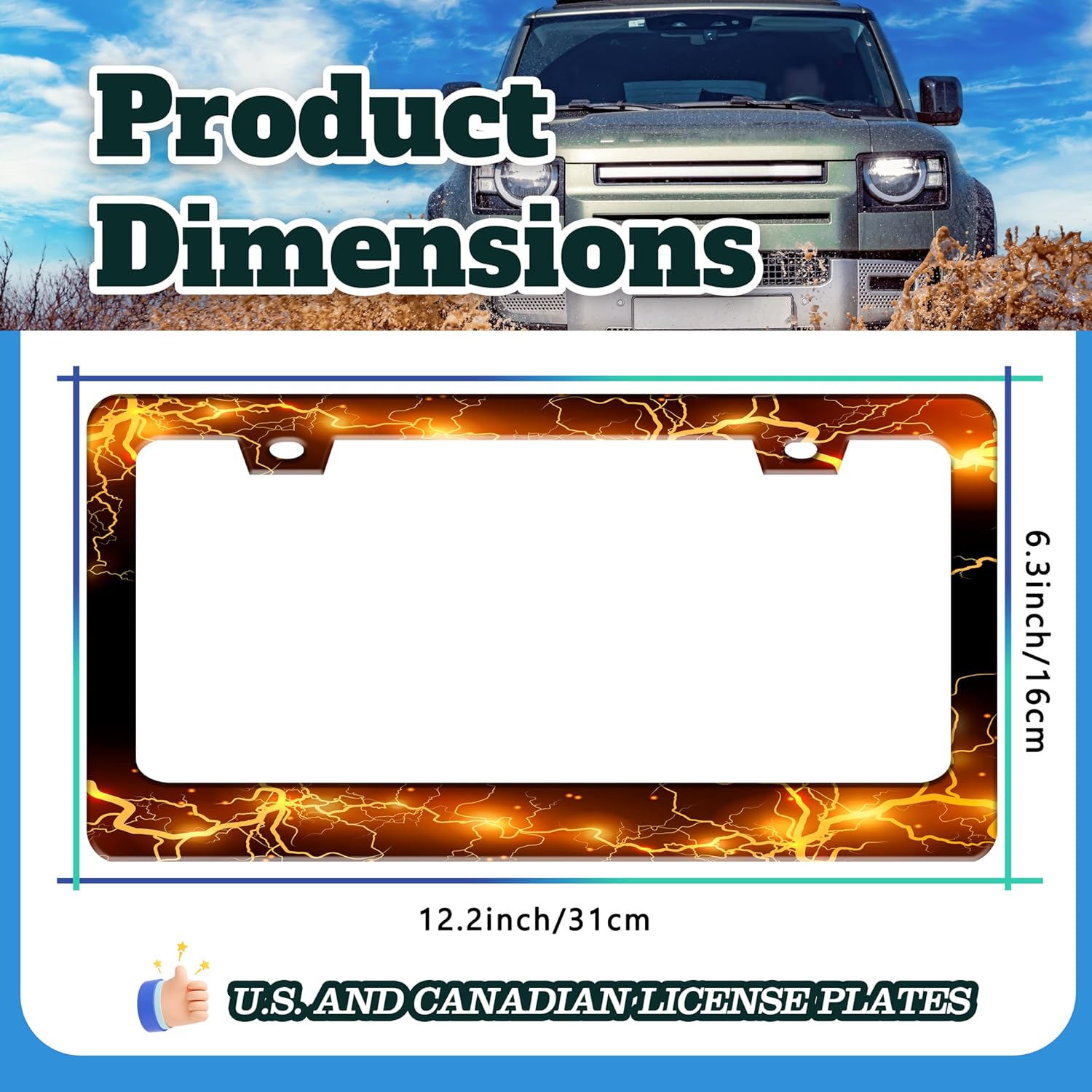 - 6.3 X 12.2 INCHES: Suitable for most standard size U.S. and Canadian license plates, can be applied to front or rear license plates, universal style. Add points to the beauty of your car!
