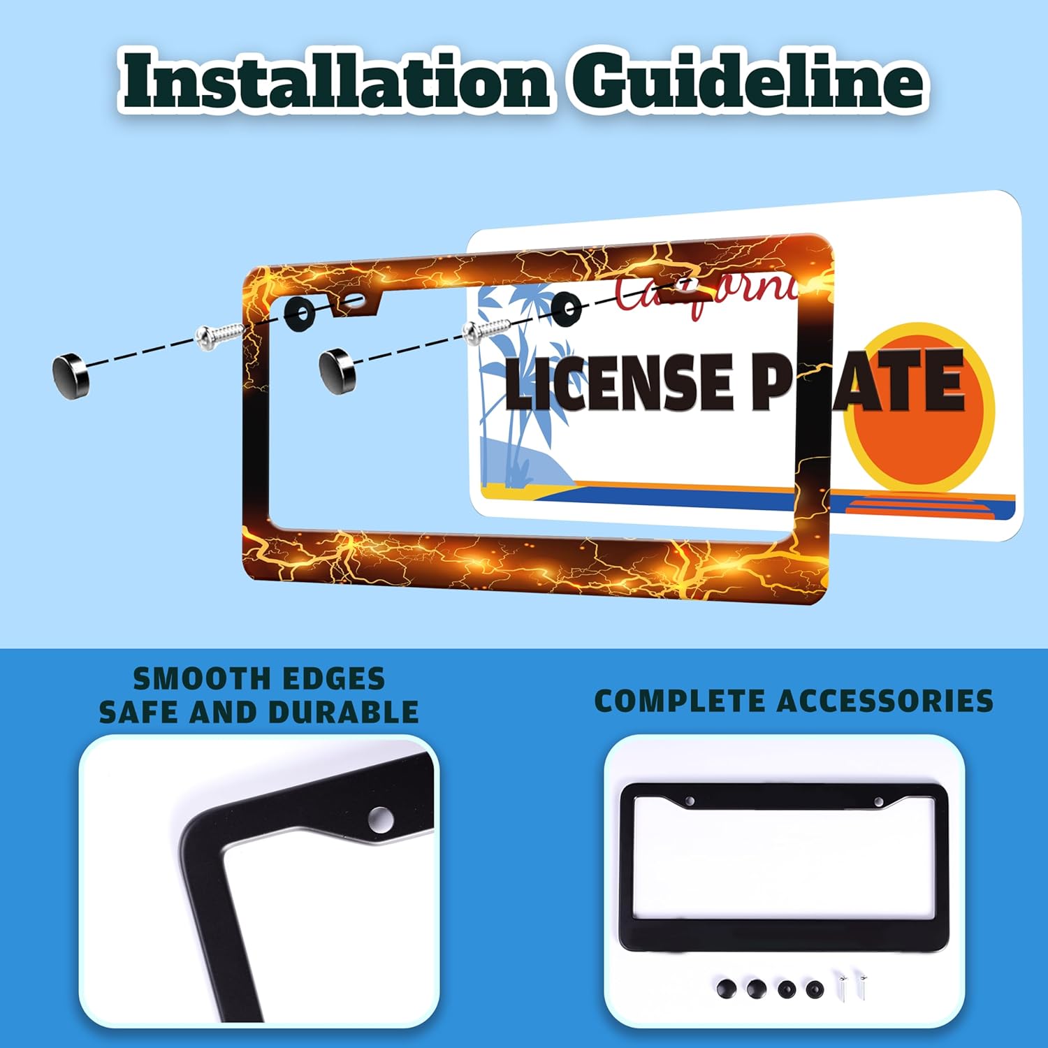 - STAINLESS STEEL LICENSE PLATE: The material is strong and not easy to bend, and can be used for a long time.The multi-layer protective design treatment improves your experience of using the license plate frame.