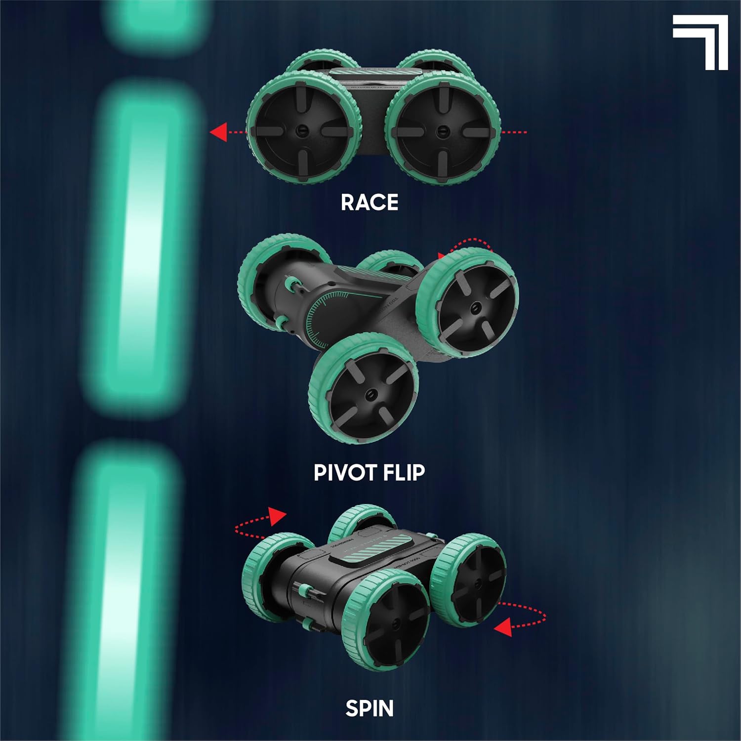 - ✔ 360° TUMBLING & DOUBLE-SIDED DRIVING: Perform jaw-dropping 360-degree flips and stunts with the unique double-sided driving feature, allowing the car to tumble and drive in any direction for non-stop fun.