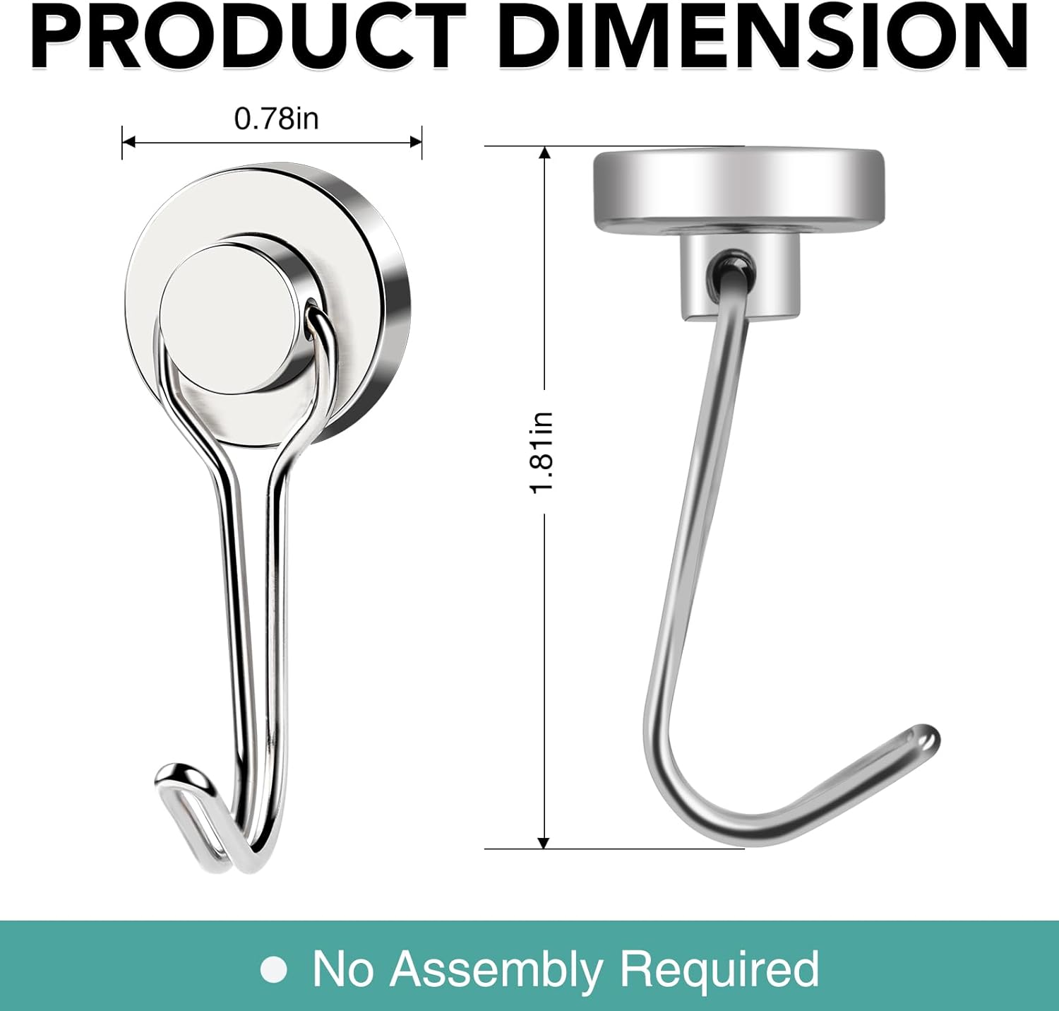 - 【Quality Assurance】- We are a professional seller of strong magnetic hooks. Our neodymium heavy duty magnetic hooks have extremely high quality and undergo quality inspections during and after production. Your purchase is protected. What are you waiting for? It's time to clean up the space.