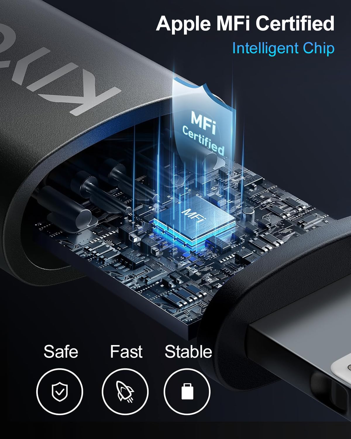 - Apple MFi Certified Charging Cable: The MFi certified cable is compatible with all Apple system devices with lightning ports, and the built-in smart chip ensures safe and fast charging and data transfer. Current up to 3A, transmission up to 480Mbps, quickly transfer images, music, videos, and files within seconds.