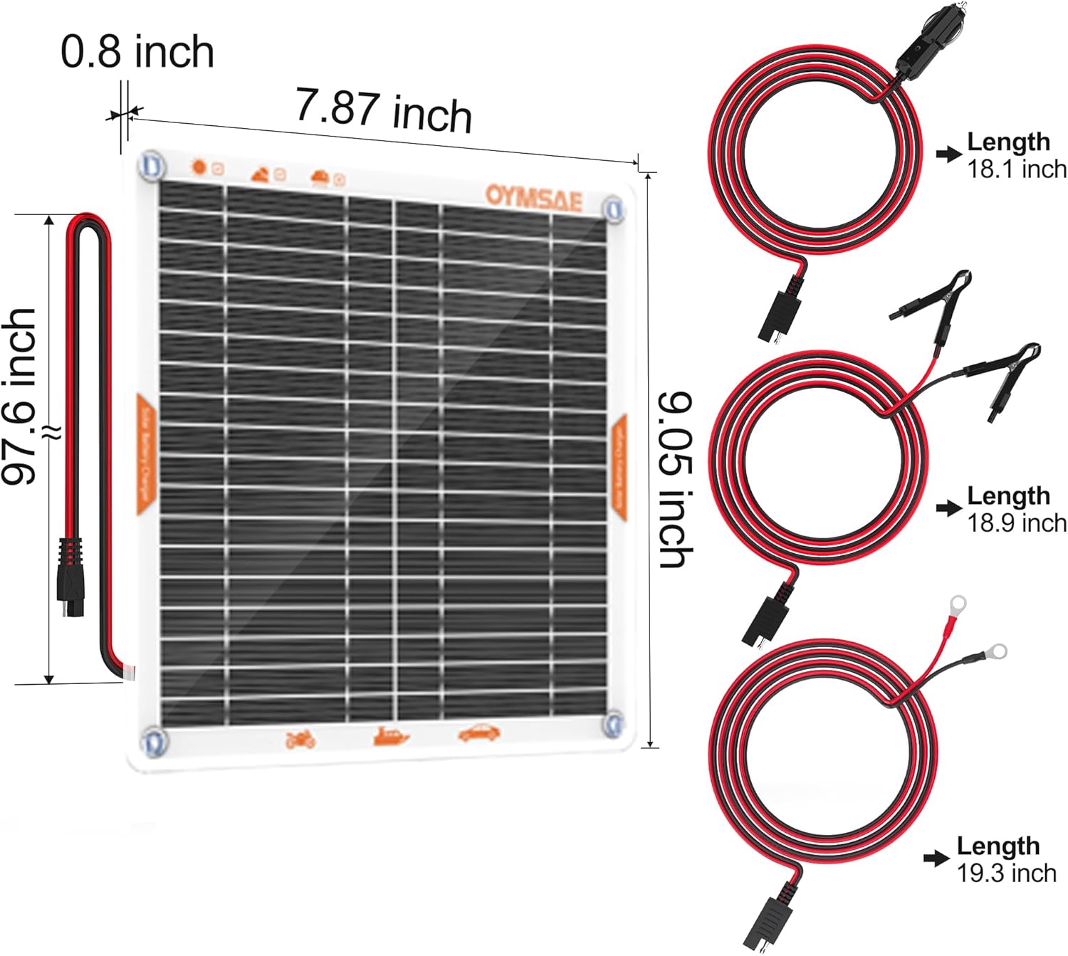 OYMSAE 5W 12V Solar Car Battery Charger Portable Waterproof Solar Power Battery Charger & maintainer with Trickle Cigarette Lighter Plug & Alligator Clip