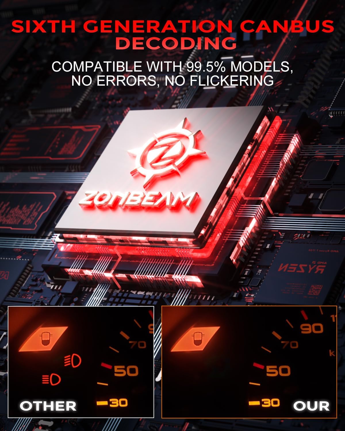 - [Friendly to Oncoming Drivers] The light pattern has been designed to be more scientific and safe, taking into account actual driving conditions. The light pattern of the bulb is focused on a clear and sharp demarcation line. It illuminates the road without causing glare to oncoming drivers.