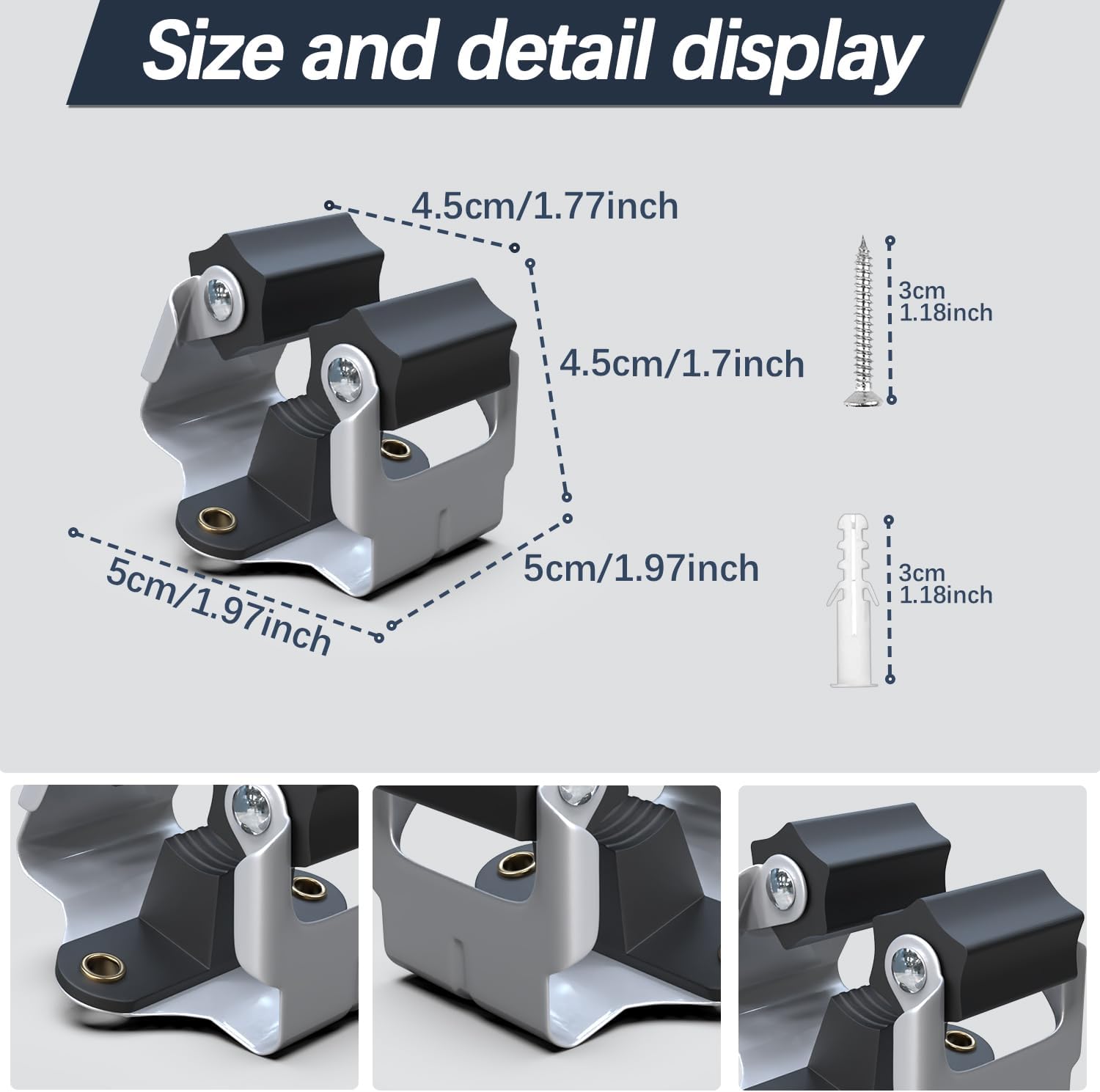 - EASY TO USE: Because mop broom holder wall mounted is made of 0.7mm thick metal material instead of 0.5mm as most of the ones on the market, you don’t have to worry about deformation even if you use it indoors or outdoors for a long time.You can slide the broom in and out with one hand. Unlike plastic mop holders with spring-loaded rollers, this broom organizer wall mount has rubber rollers to hold the handles, allowing the handle to slide in from the front and be held firmly in place.