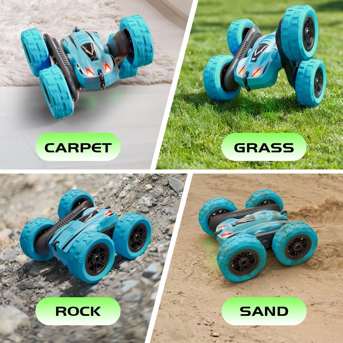 Remote Control Car for 6-12 Year Old Double Sided 360°Rotating 4WD RC Cars with Headlights 2.4GHz Rechargeable Electric Stunt Race Car Toy for Boys Girls Birthday Gifts(Blue)