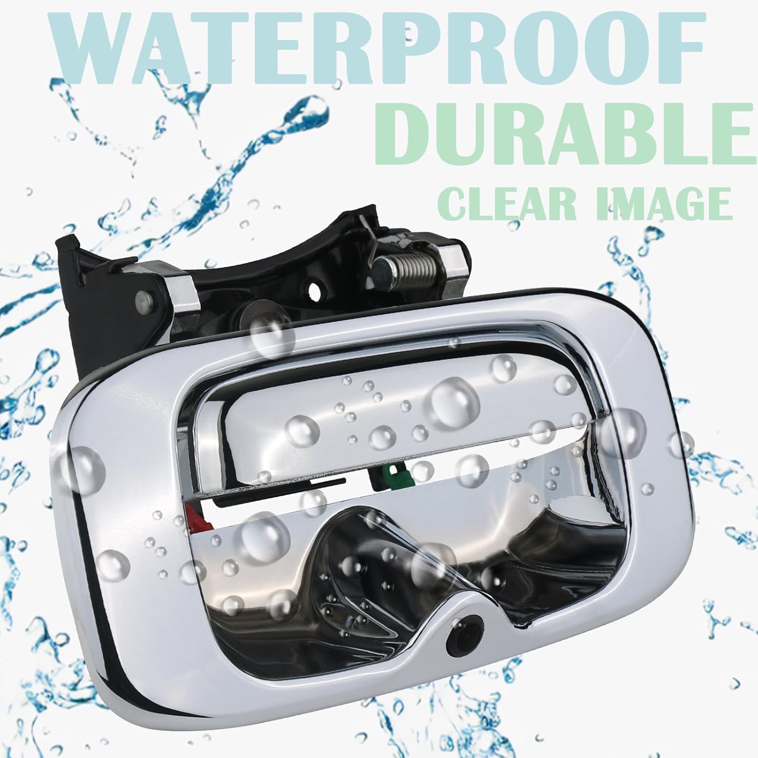 - FEATURES:The chrome rear door handle is made of good plastic and metal,rear view camera using high-definition sensor,clear image, good night vision effect,and waterproof, durable,corrosion resistance,170°perfect view Angle design and wide field of view without blind spots,to help you safely,reverse and park,solve your safe driving problems