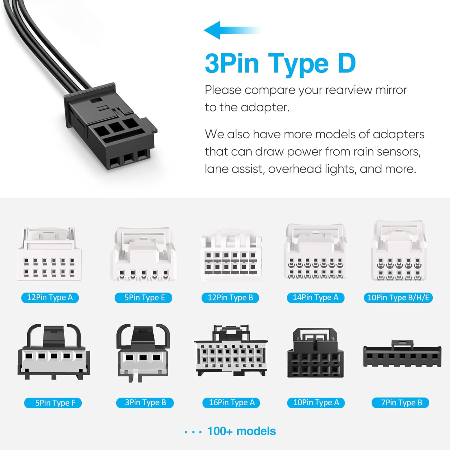 - 【Dashcam Power Adapter (3Pin Type D) Applicable Car Models】 This dash cam power adapter is suitable for Ford : F150/F250/350 Super Duty/F-150 Lightning/Transit Connect/Expedition/Explorer/Mustang/Fusion/SSV Plug-In Hybrid/Flex/Edge/Escape/Bronco Sport/Ranger/Taurus/Fusion Lincoln : Aviator/Nautilus/Navigator/MKX/Corsair/MKC/MKT/MKZ/MKS, and etc. Vehicle must be equipped with rain sensor, if you don't find your car model, please search in the detailed model list.
