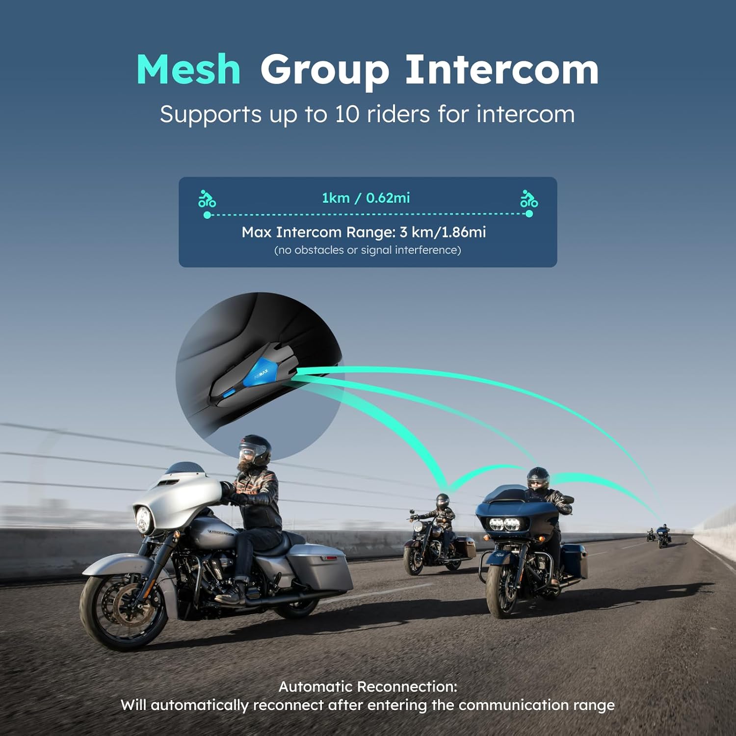 - >Bluetooth 5.3 & 10-Rider Intercom: Advanced dual-chip octa-core Bluetooth 5.3 ensures low power use and stable connections. Supports intercom for up to 10 riders with cross-brand compatibility.