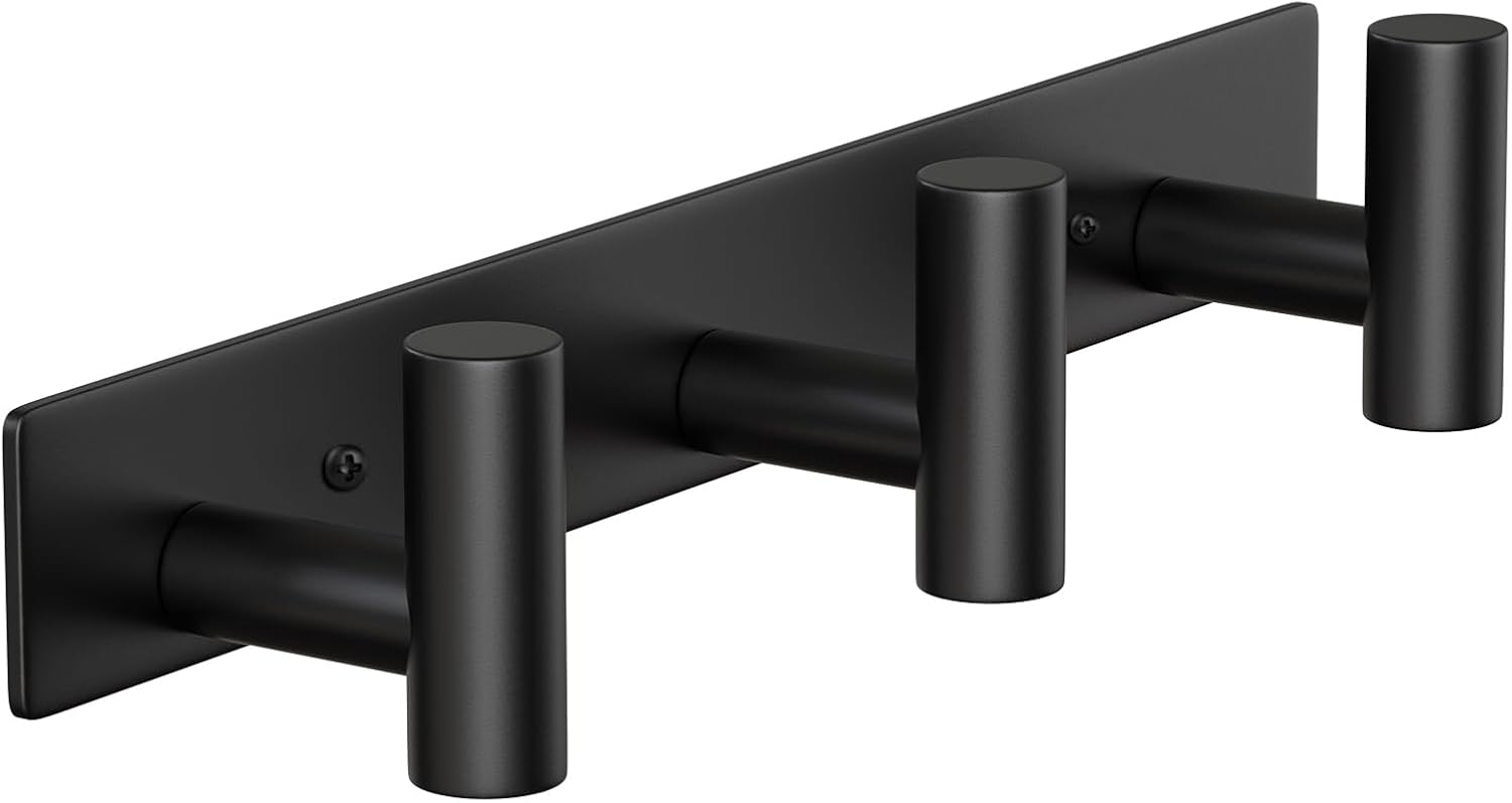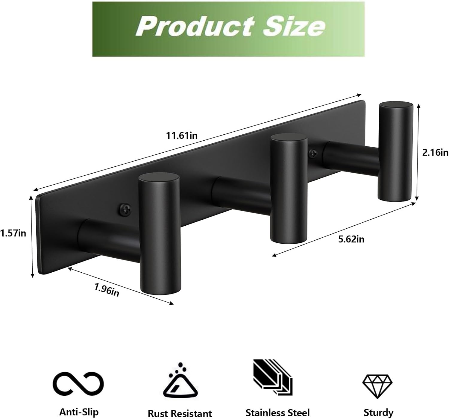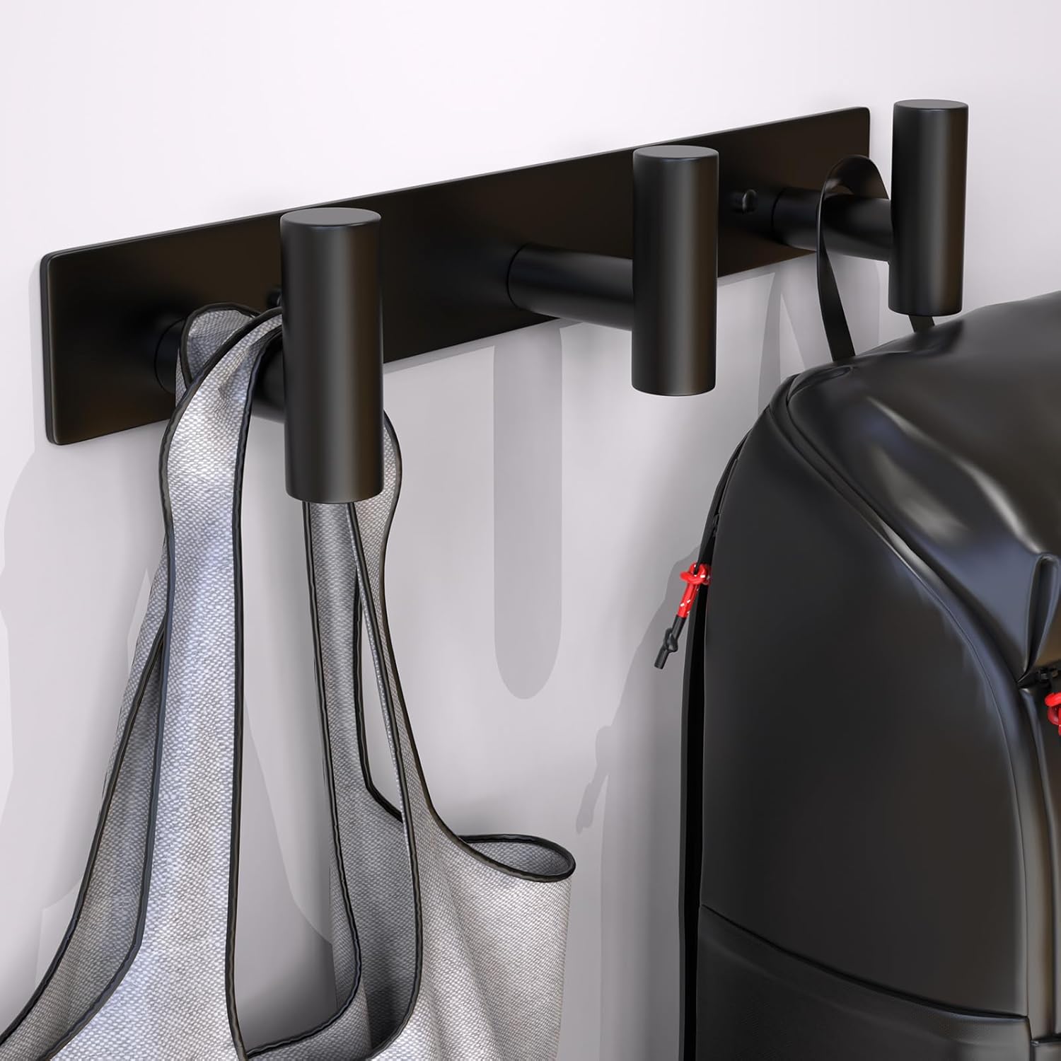 Wall Mounted Coat Rack-3 Hooks, Heavy Duty Stainless Steel Hook Rail for Towel Coat Hat Purse Bag Jacket, Towel Hooks for Entryway Bathroom Kitchen (Black 3 Hooks - 1 Pack)