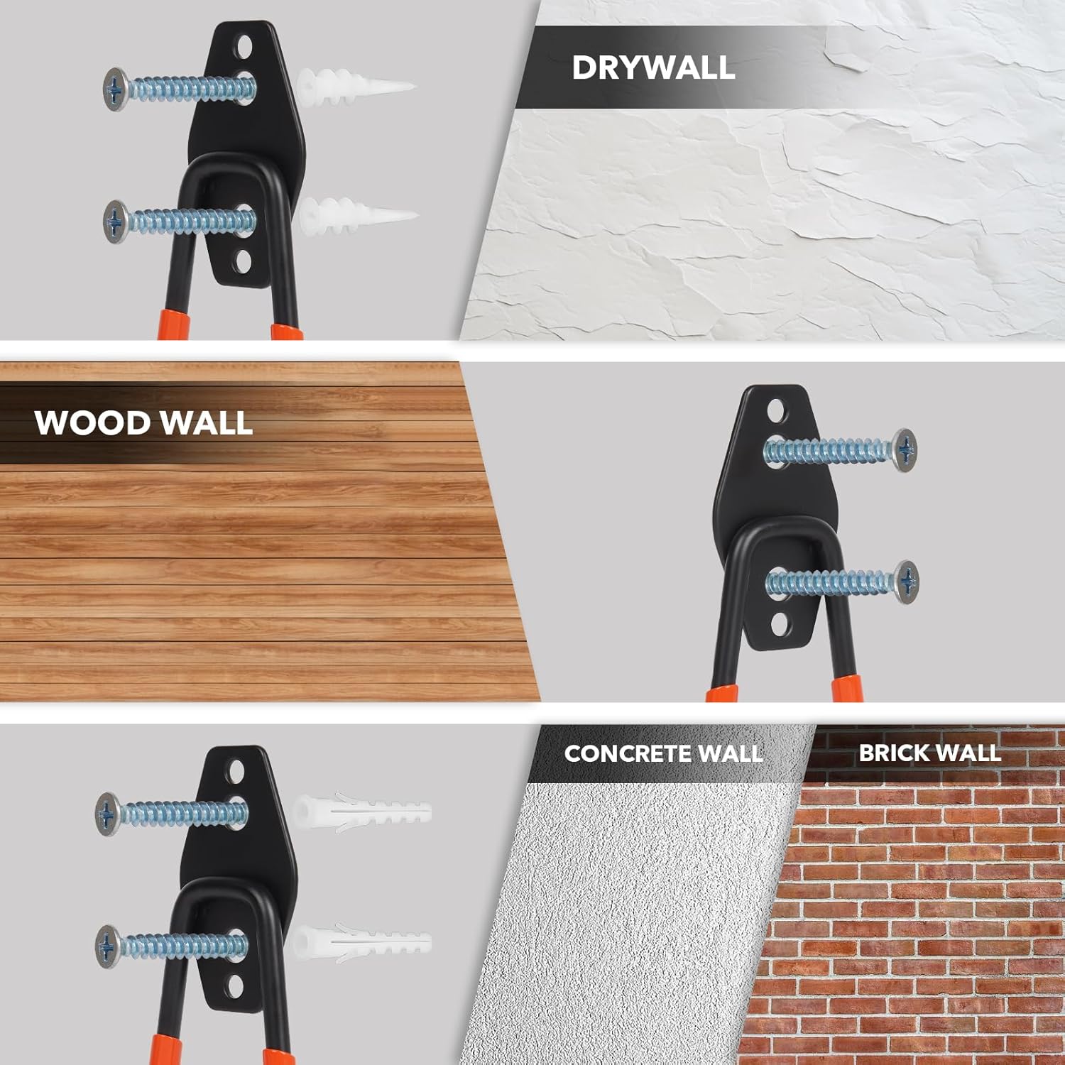 - 5. Garage Organizer: When purchasing our Heavy Duty Garage Hooks, you'll receive 2 heavy-duty hooks, 4 reinforced wall anchors, and 4 corrosion-resistant screws. Effortlessly transform your space by maximizing vertical storage capacity, clearing floor clutter, and establishing a streamlined organizational system.
