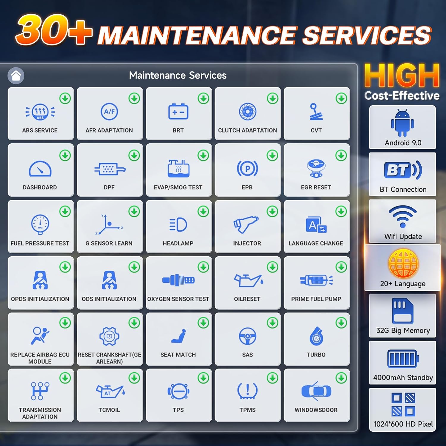 - 【Easy to Use】No cable mess! Our wireless VCI boasts a 65.62 - foot range for stable car diagnosis. Customize diagnostics with ease! Slide screen to pick modules, adjust font in 6 sizes. 809BT walks beginners through diagnostic steps, simplifying complex tasks. The 4000mAh battery lasts 3+ hours, ideal for all repair lengths. Android 9.0 with one - click WiFi upgrade. 32GB storage for reports, pics, and software. Ergo silicone design and back stand let you diagnose comfortably outside the car.