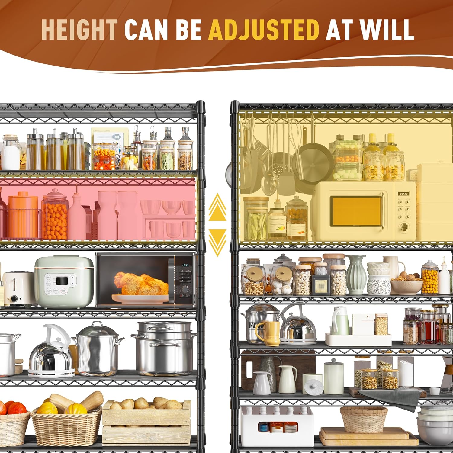 - ăMetal Shelves with Multiple Usage in Kitchen/Pantry/Garage/GardenăThis shelving is a very handy organizer, it fits so well in many different areas. With its perfect size and height-adjustable features, the storage shelf fits perfectly to store kitchen wares next to your fridge and hold canned goods and other emergency supplies as pantry shelving. A great addition to the garage for organizing workshop tools. Storage shelves are also perfect to âstart your gardenâ