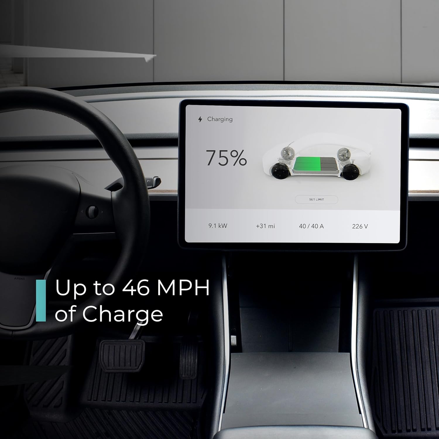 - COMPATIBILITY - This Tesla home charger is compatible with all Tesla models and North American Charging Standard (NACS). It plugs into a NEMA 14-50 outlet (40A max) or can be hardwired (48A max) and has a 16ft Tesla charging cable for convenient charging.