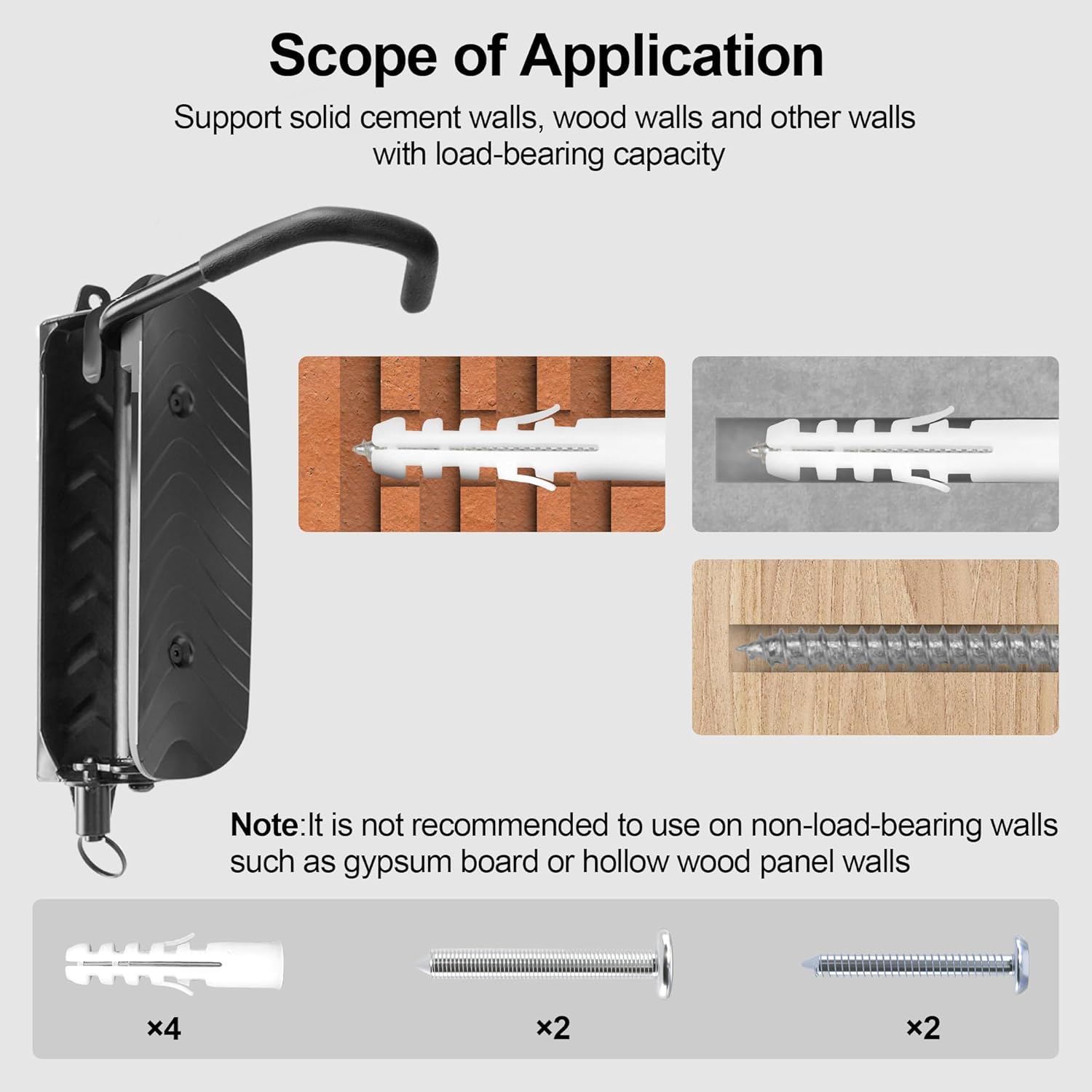 - Heavy Duty: Our bike hooks support up to 30 kg/66.2 lbs. The non-slip rubber design provides a firm grip, maximizing storage and preventing scratches. With 3 locking positions, your bike hangs securely on the wall without swaying, ensuring enhanced safety