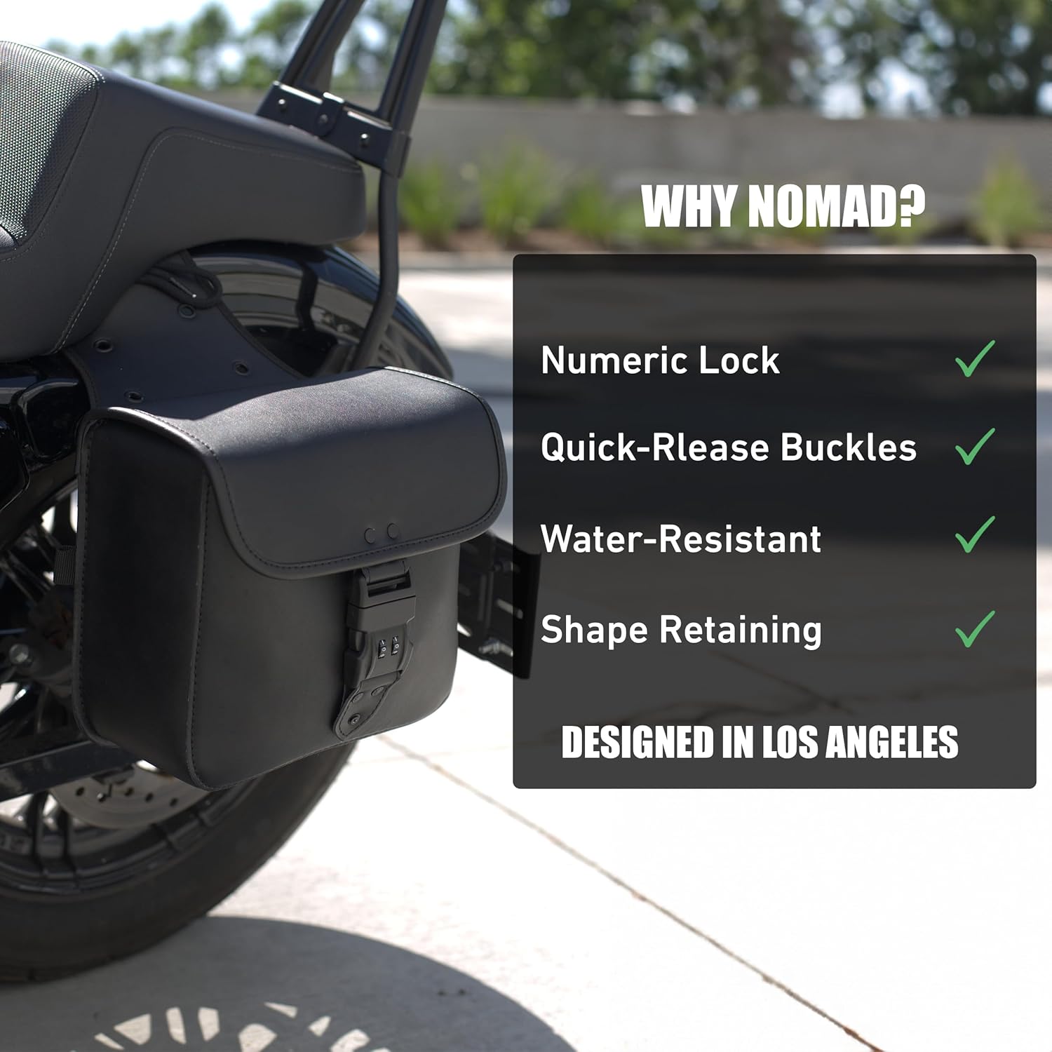 Nomad Leather Motorcycle Saddlebags Quick-Easy Universal Fit Throw Over Saddle Bags Cruiser Biker Side Bags (Black)
