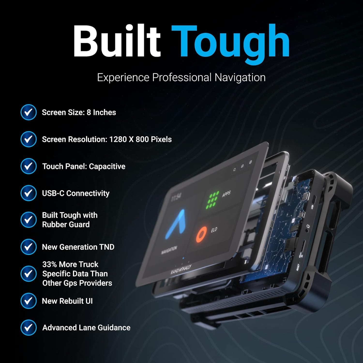 Rand McNally RANDTAB8 8-inch GPS Truck Navigator with Industry's Best Custom Trucking Routes, Rand Navigation 2.0 with 2025 Maps + Built-in Camera