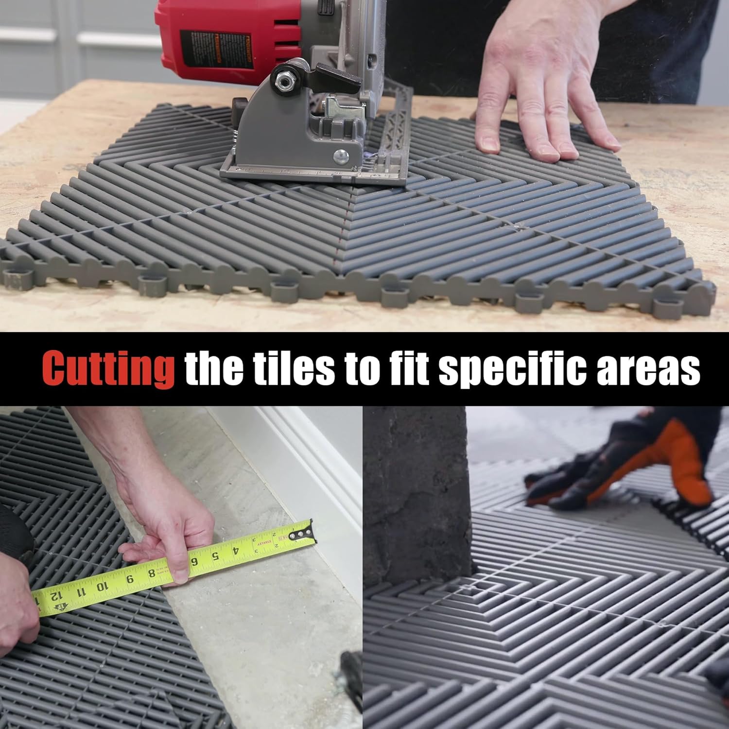 - 【Garage Flooring Transformation】 Revamp your garage with our hard plastic tiles. Ideal for garage organization, these snap-together garage floor tiles resist moisture and offer a stylish, durable surface.