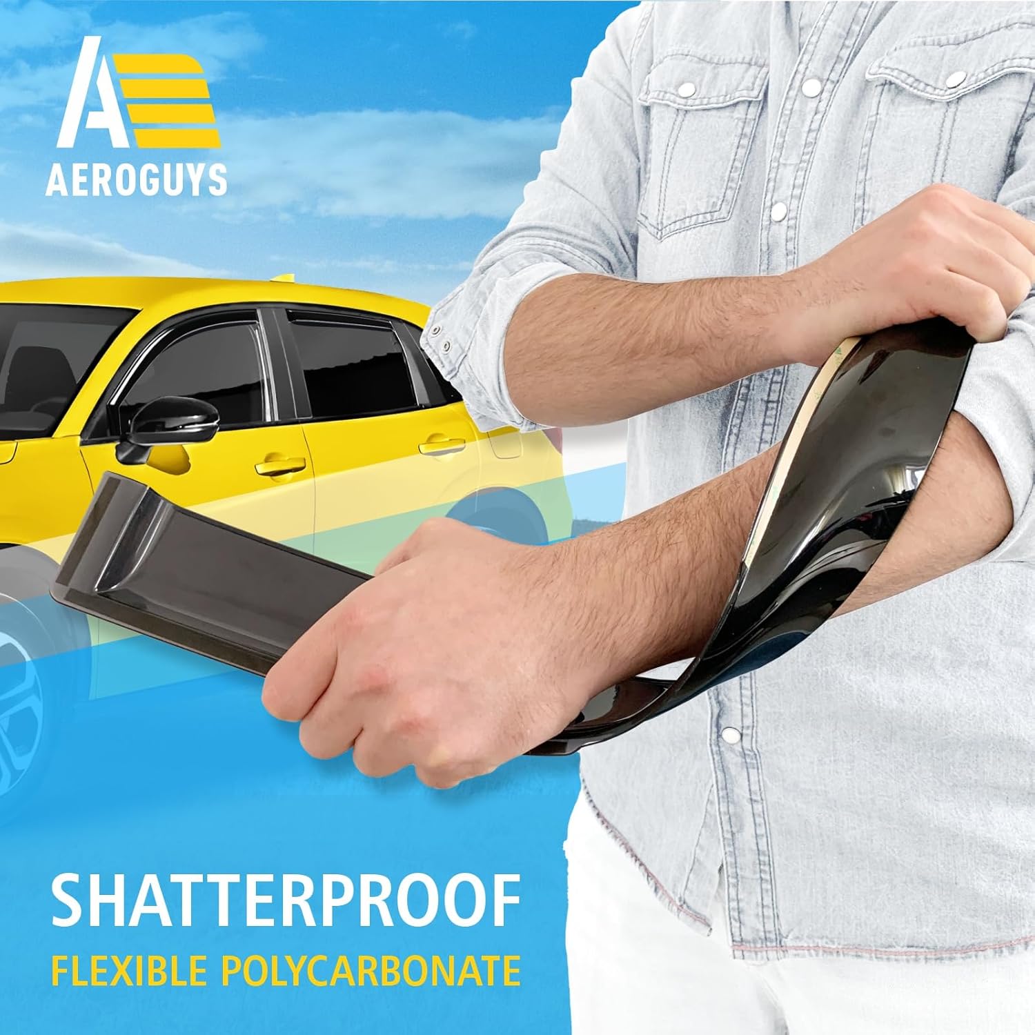 - Incredibly Durable AEROGUYS Auto Window Deflectors β They are made with strong and tough polycarbonate which is clear and scratch-resistant. They also provide UV protection making your ride more comfortable under all weather conditions.