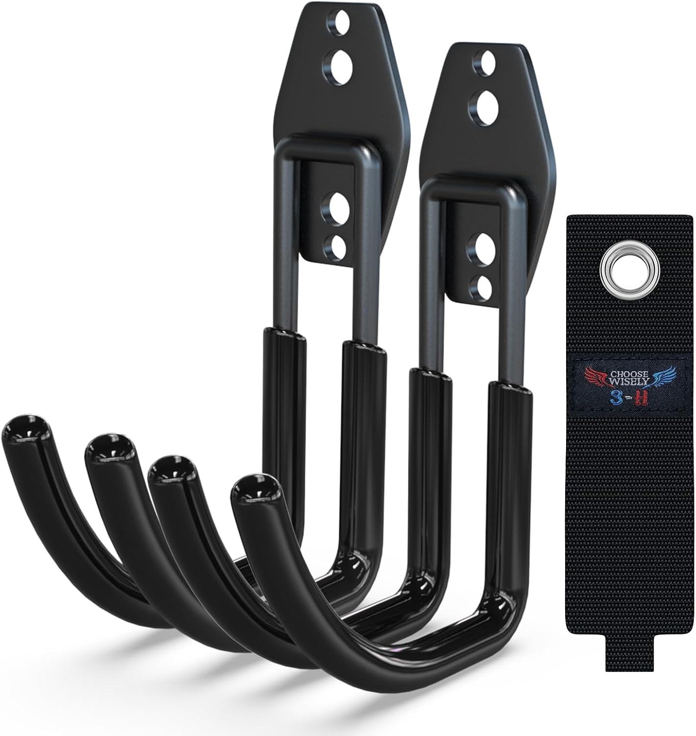 3-H Garden Hose Holder Wall Mount 2 Pack,Solid Steel Hose Hanger,Perfect for Hanging Outdoor Air Hose,Ropes,Pipes,Garden Tools,Ladders,Bikes,Bulk Items(Black)