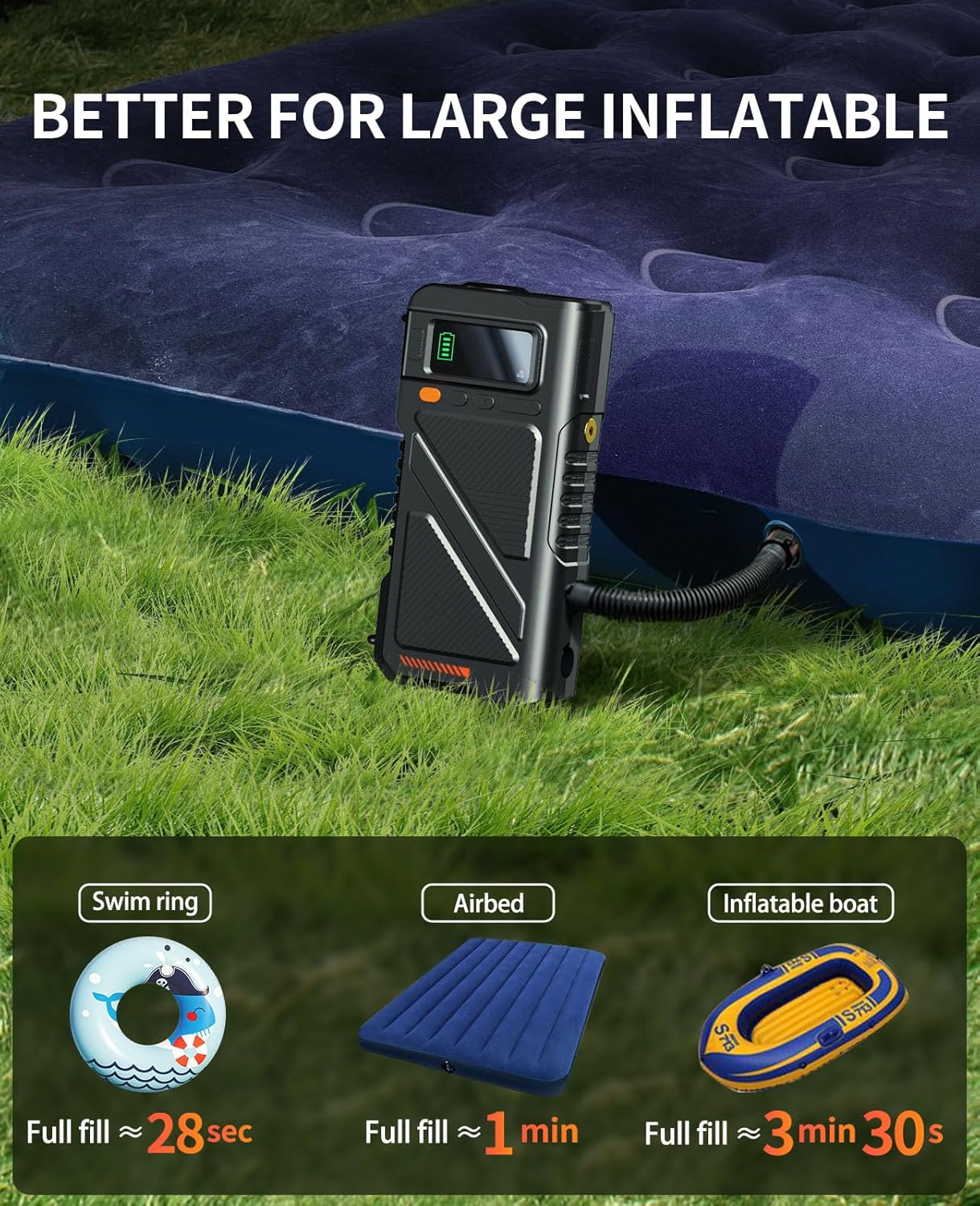 - Upgraded Jump Starter with Air Inflator & Deflator Pump: Ulike jump start with air compressor only for inflation for tires or balls, the item equipped with additional air pump especially to inflat and deflat the mattress beds, boats, swimming ring ect, up to 150PSI. It's a great tool whether you're garden entertaining or traveling outdoors