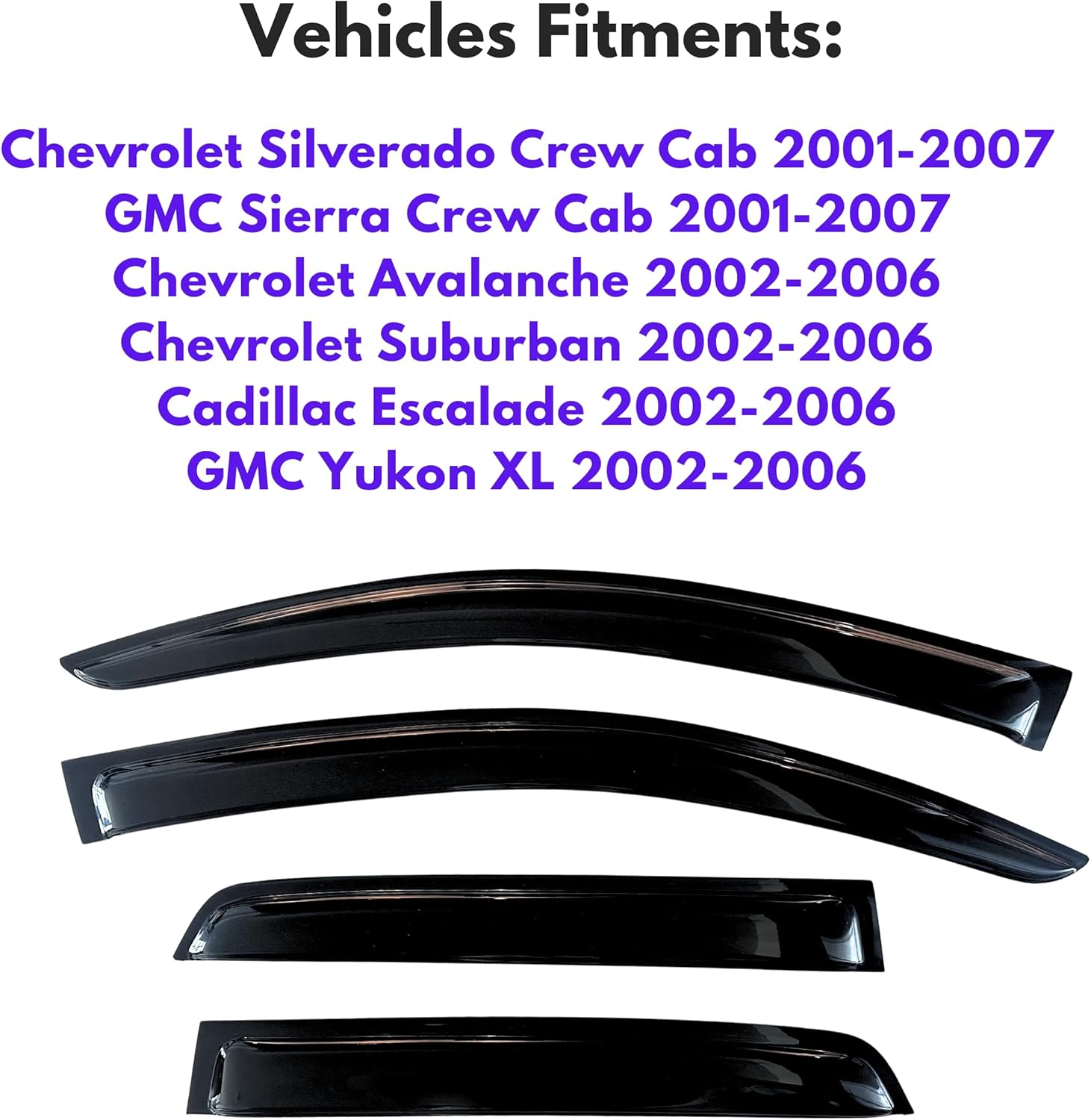 - 【Perfect Fit】KPY window visors rain guards vent deflectors compatible with Chevrolet/Chevy Silverado/GMC Sierra Classic/Crew 2001-07, Avalanche/Suburban/Yukon XL 2002-06, Cadillac Escalade EXT 2002-06, 2001-07