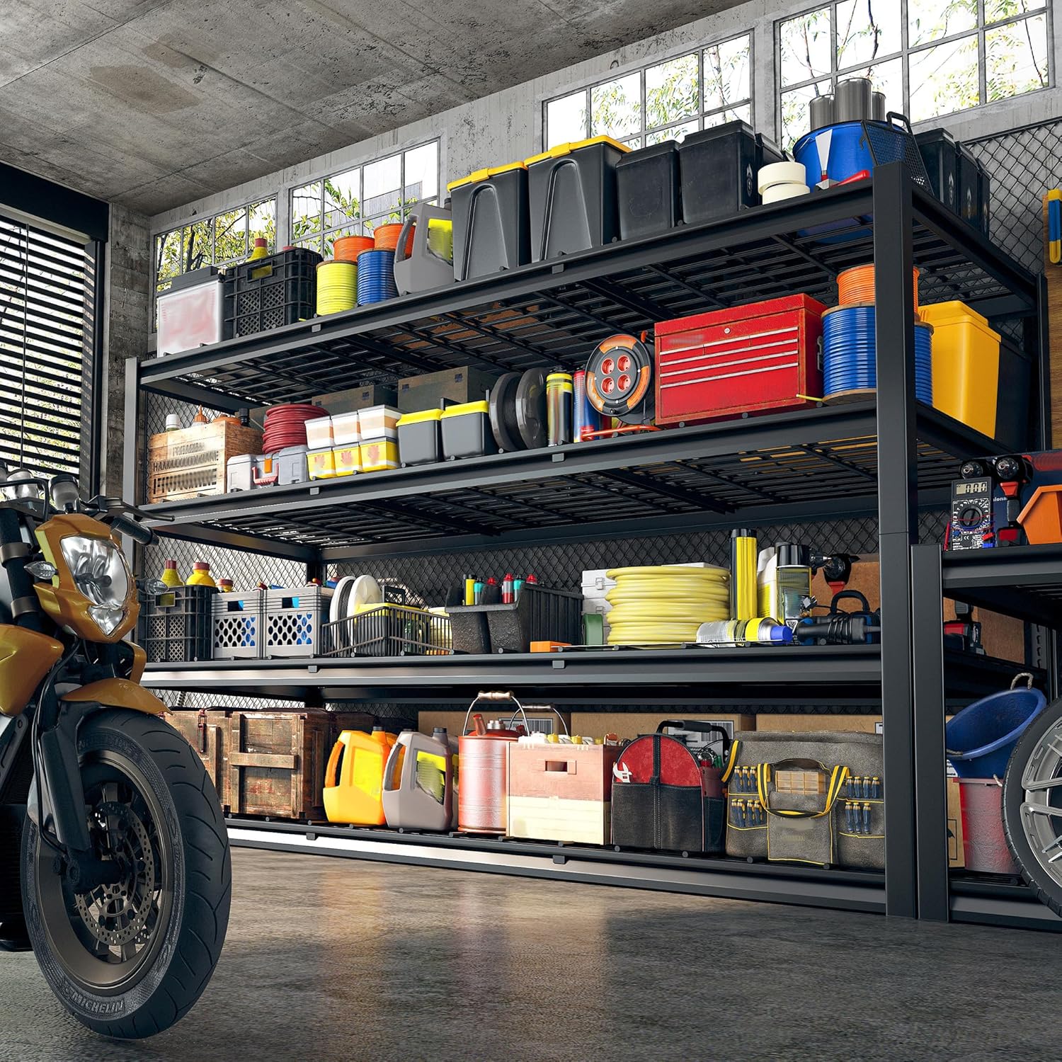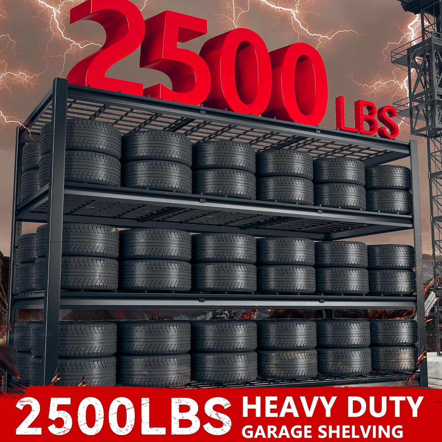 - ă2500 LBS Capacity Heavy Duty Shelving Can Hold a Lot of Heavy Stuff !! ăGarage shelving is made of premium metal material, and double-layer thickened metal racks. Wider and thicker posts make the whole metal shelving very stable.The entire metal shelves has 2500 LBS total load capacity. You can load your new storage system up with generators, air pumps and maintenance tools etc. The shelving units and storage is more sturdy and durable than normal metal shelving for storage