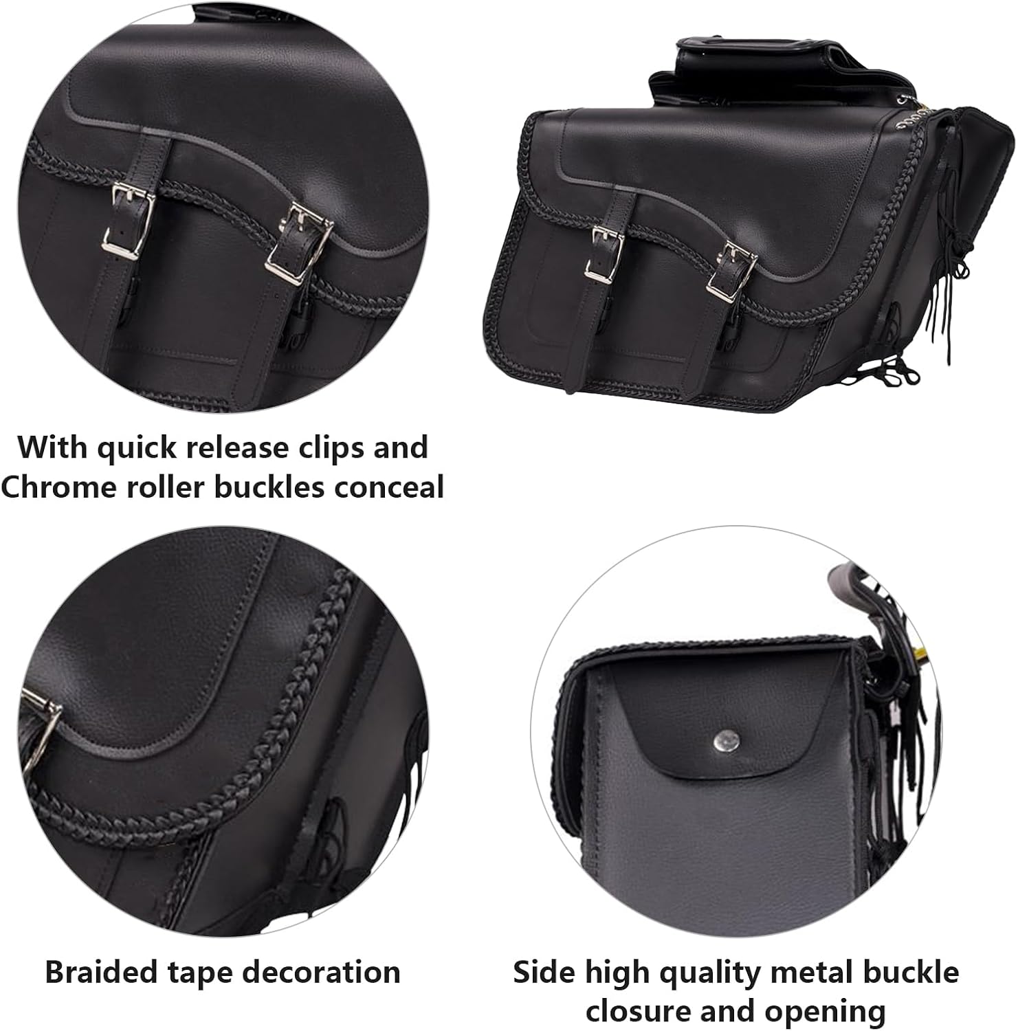 - 【Leather Material】This motorcycle saddlebags is made up of soft and durable heavy-duty PVC leather. The reinforced sewing and moderate thickness make our motorcycle saddle bag can always keep its shape and longer service life.