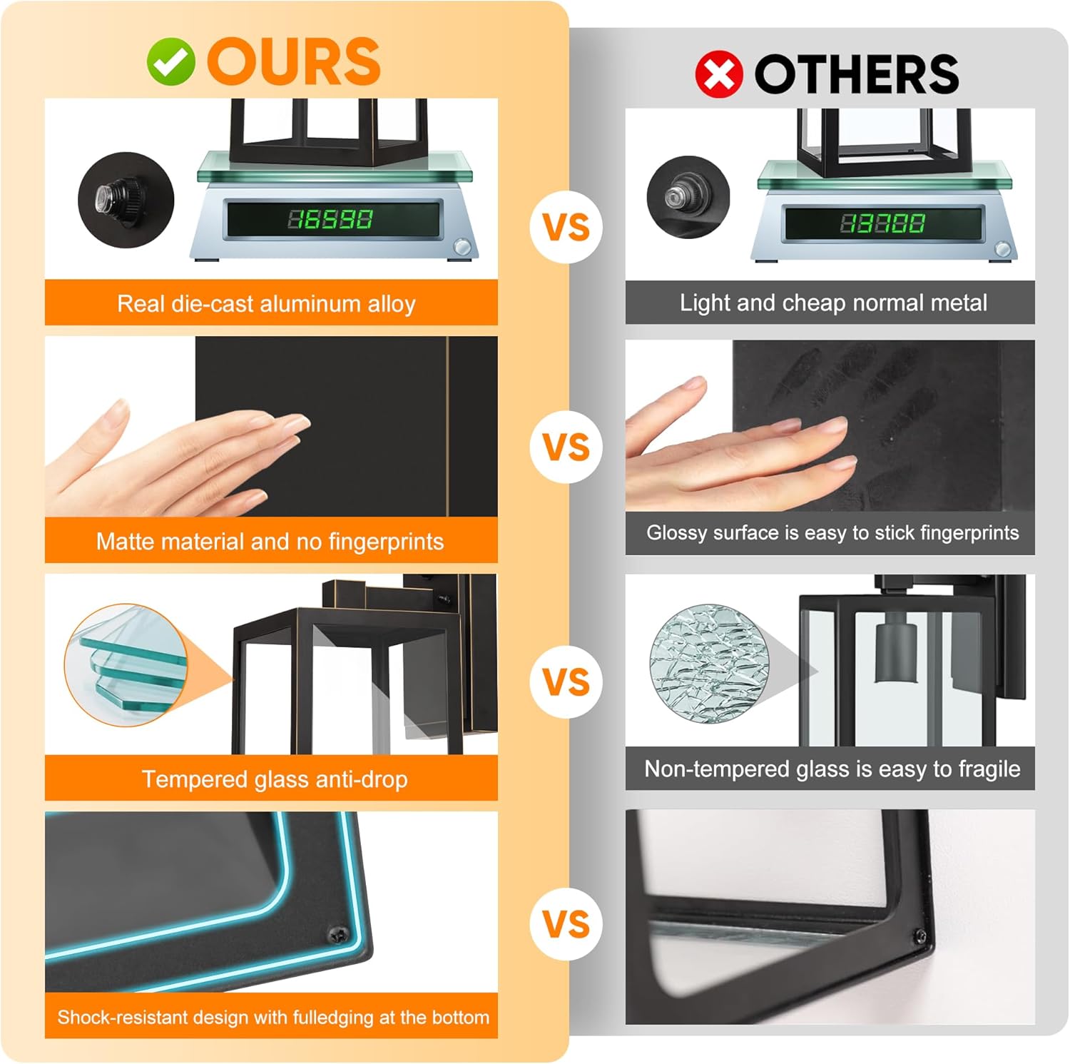 - 【Transparent Tempered Glass】Unlike other fragile and crispy glass panels, our outdoor exterior lights for house take the most advanced high tempered glass, steady enough and highly durable. Besides, with the transparent appearance, it will help the wall light emits more soft and cozy light for your family, add a beautiful atmosphere outside your house.