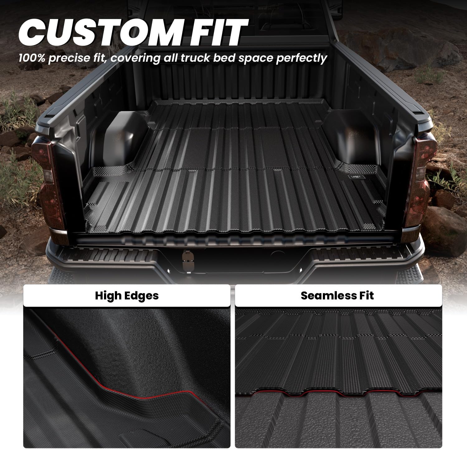 LASFIT Truck Bed Mat 2020-2025 for Chevrolet Silverado/GMC Sierra 2500HD 3500HD (Only Fit 6.8FT, Not Fit 5.8FT/6.6FT) All Weather TPE Custom Fit Car Bed Mat, Black (Not for 5th Wheel Package)