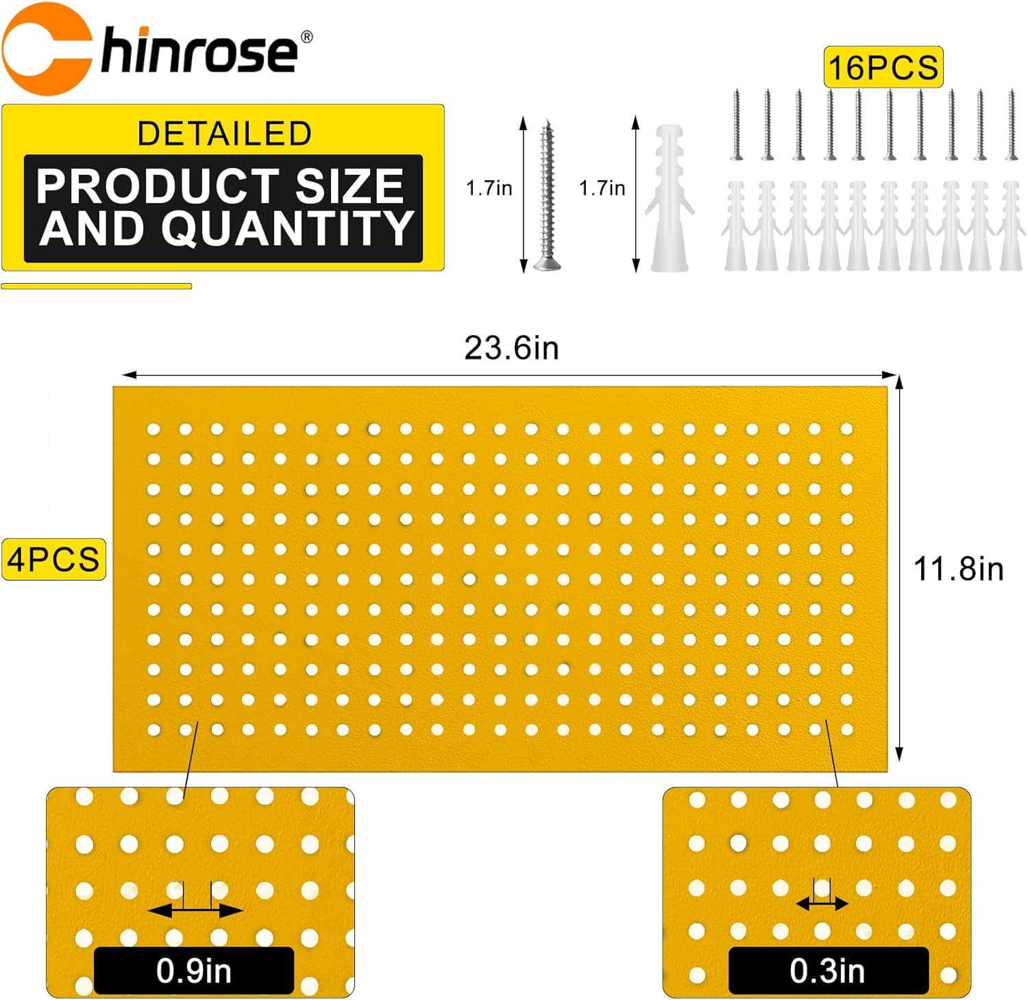 Metal Peg Board Panels for Workbench, Shop, Shed Modular Peg Board Organizer Board Kit, pegboard Wall Organizer(4 Pack, Yellow)