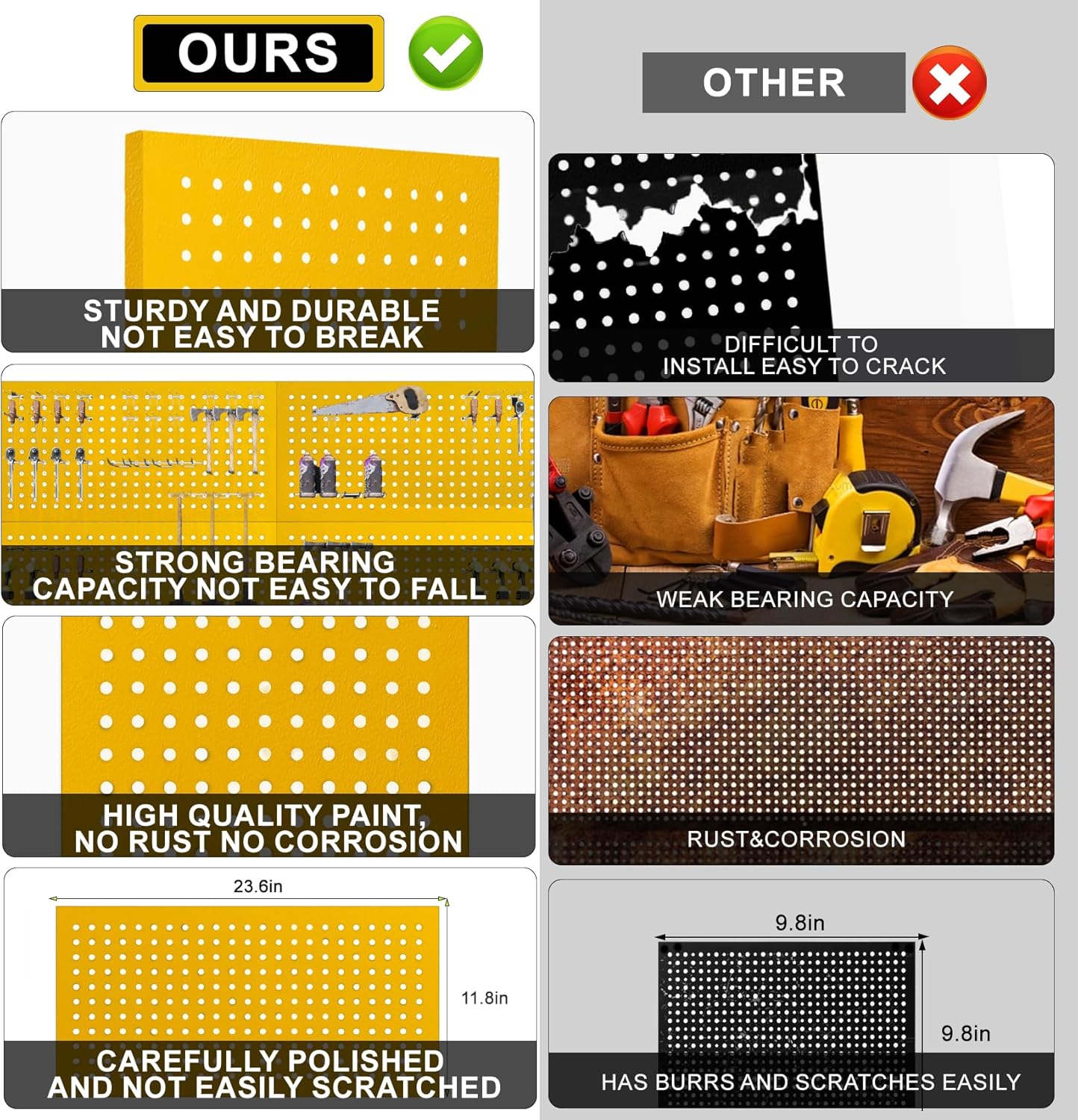 - Sturdy Construction: Made from durable metal, this pegboard is designed to withstand heavy loads and resist rust and corrosion