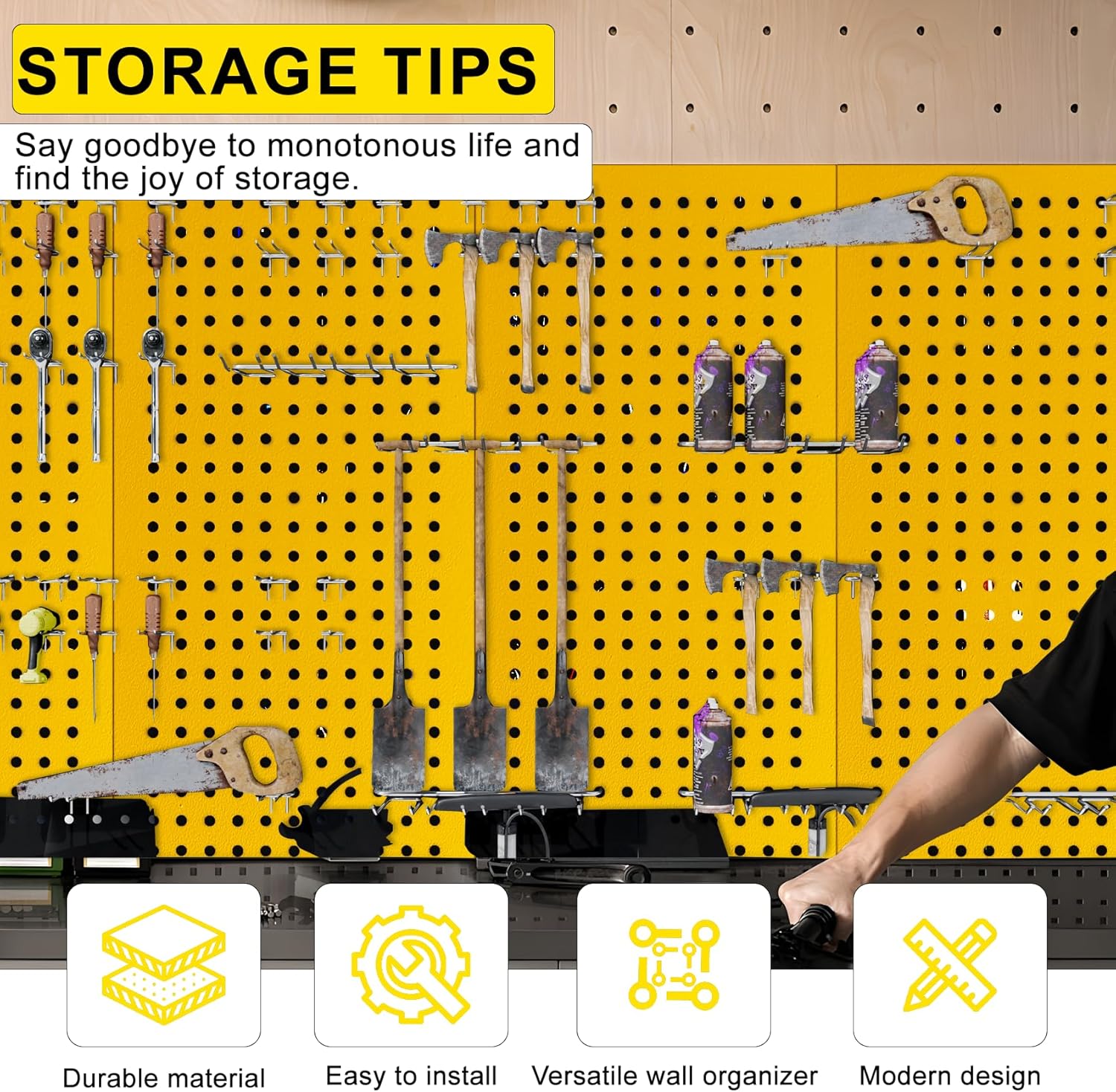 - Easy Installation: With pre-drilled holes, the pegboard can be easily mounted on any wall, allowing you to maximize your storage space