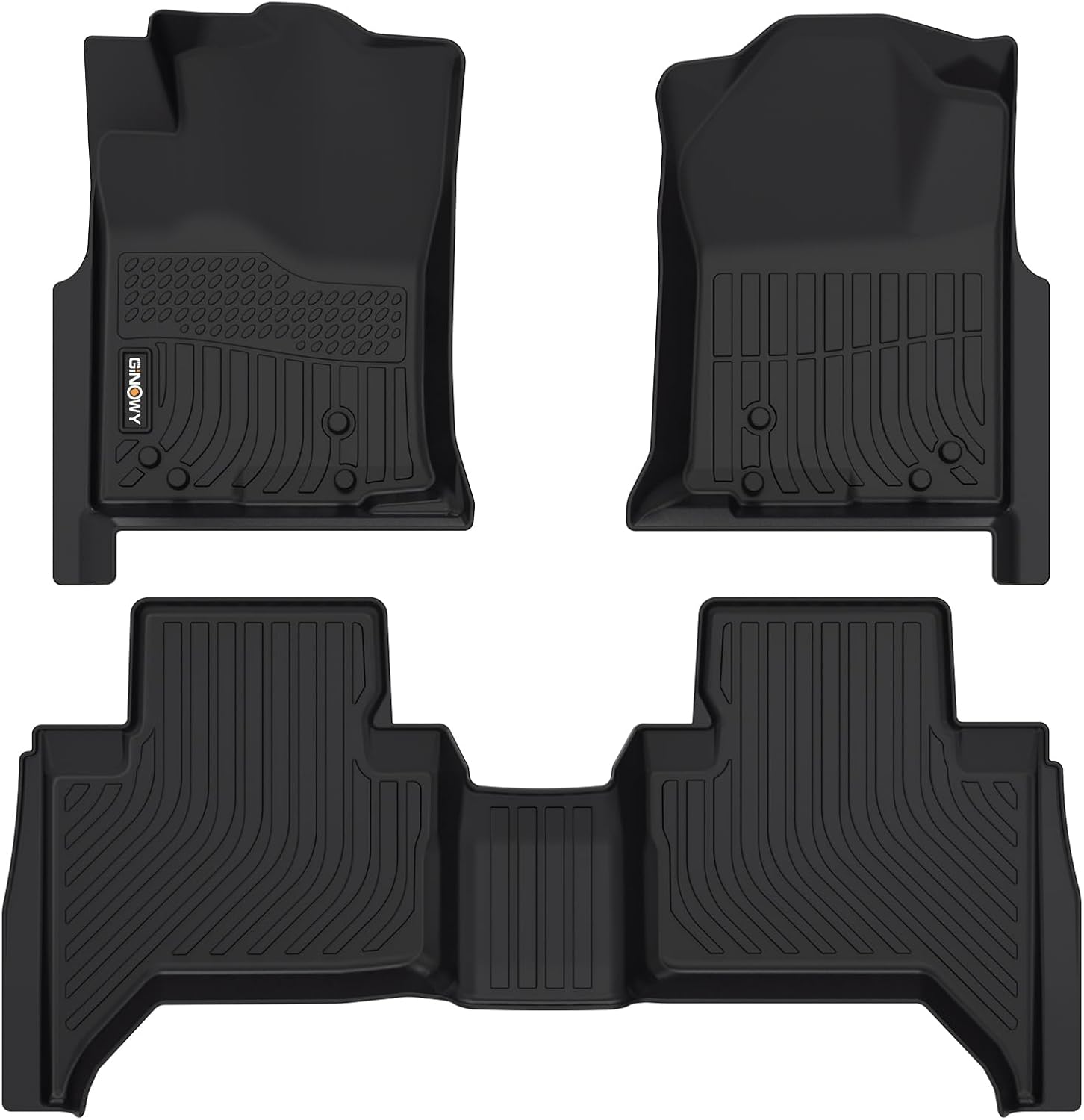 GINOWY- Floor Mats for Toyota Tacoma 2005-2015 Double Cab TPE All Weather Protection Car Mats for Toyota Tacoma, Non-Slip Floor Liners Waterproof Heavy Duty Automotive Accessories Black
