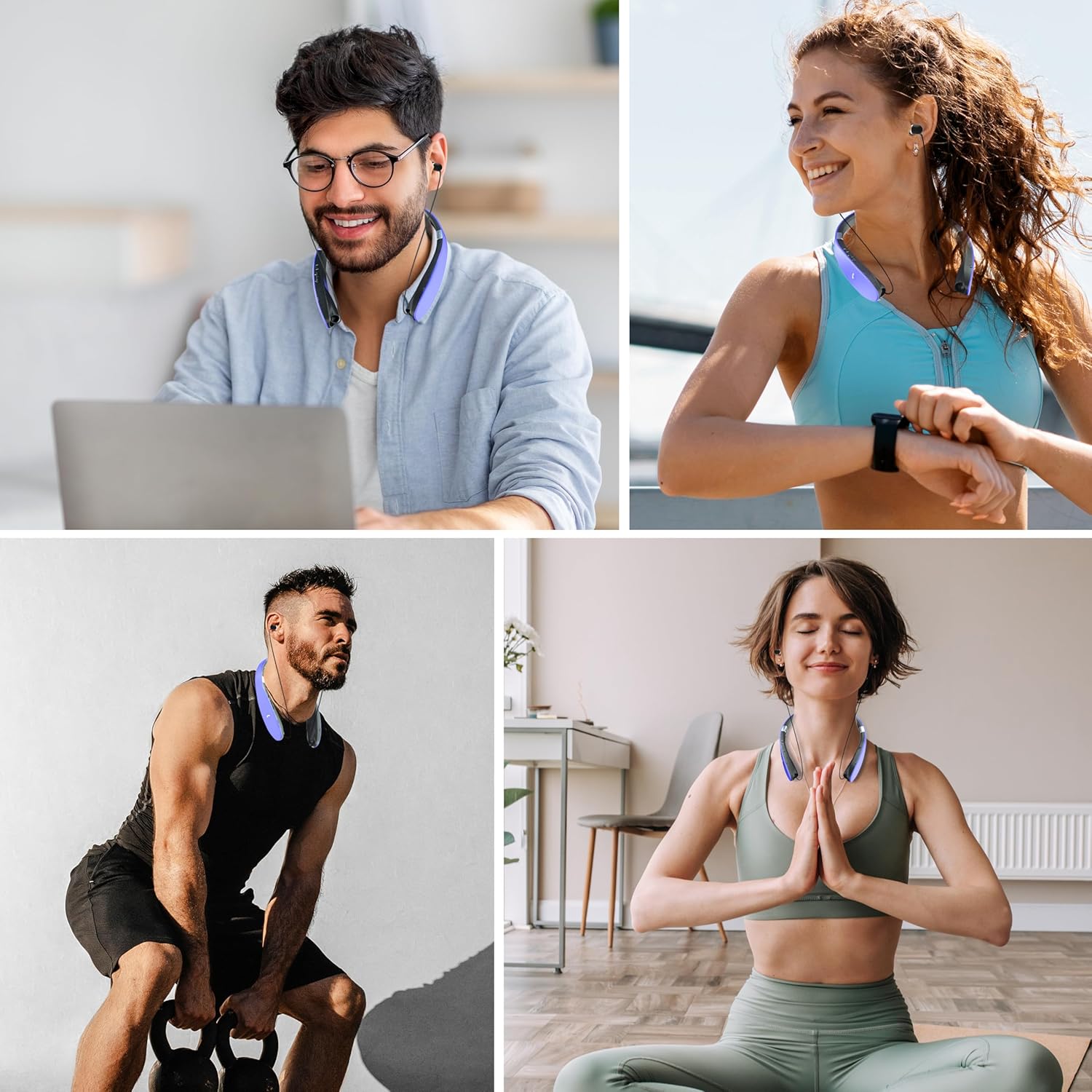 - [Long Lasting Battery Power]: AMORNO Bluetooth neckband headphones can provide 16 hours music play time, 18 hours talk time and 300 hours standby time after 3.5 hours single full charge, you can use it for all day work or enjoy long lasting music, battery power status can be checked in your device, very conveniently.
