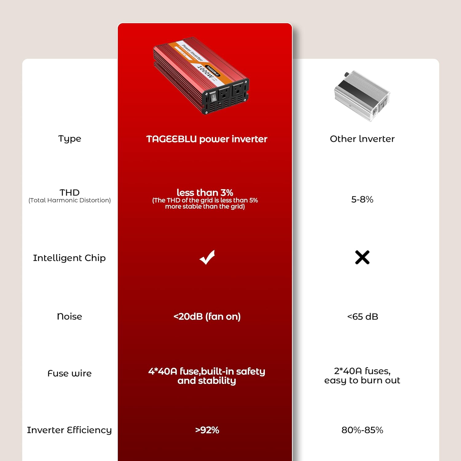 - 【Silent Fans Smart Temperature Controllend】When the inverter's internal temperature exceeds 43℃ or the machine's power efficiency surpasses 40%, the fan will initiate operation. Conversely, when the inverter's internal temperature drops below 37℃ or the machine's power efficiency falls below 30%, the fan will cease operation. The low-interference technology ensures that the fan operates quietly