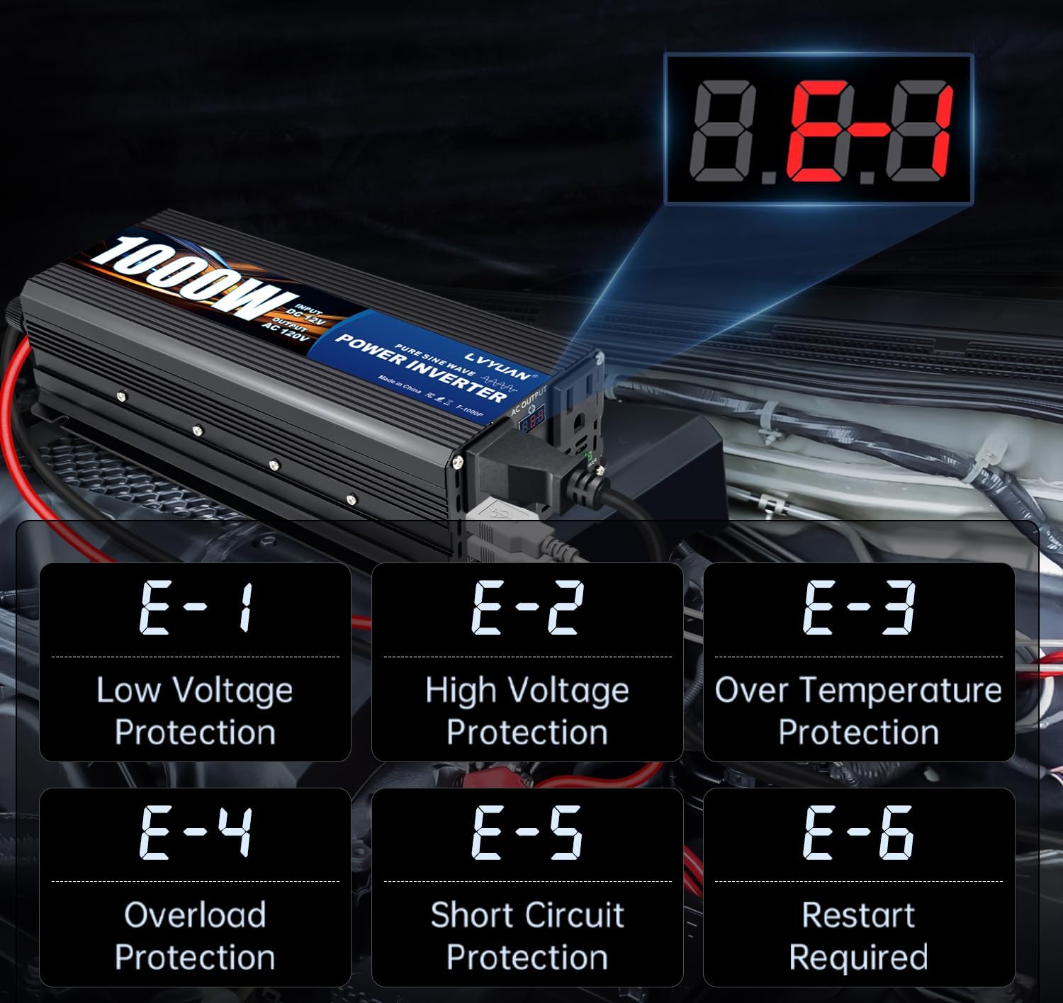 - COVERING A VARIETY OF OCCASIONS: LVYUAN pure sine power inverter is designed for various occasions such as home, camping, RV, car power adapter and emergency power.The 1000W pure sine inverter is very suitable for electronic devices such as TVs, laptops, vacuum cleaners, refrigerators, etc