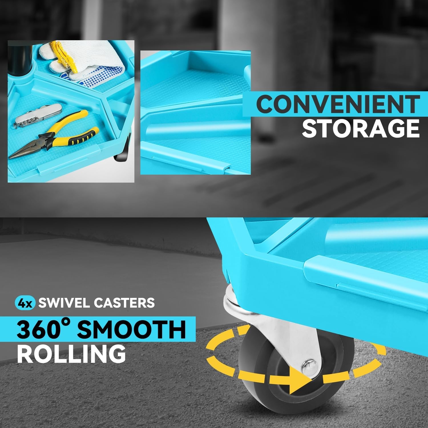 - Excellent Mobility - Designed with four 2.5" swivel casters, this garage rolling stool offers maximum mobility. You'll enjoy smooth and precise movements throughout your garage, making your work routine more efficient. The casters allow for omni-directional movement, whether you're in the garage or workshop.