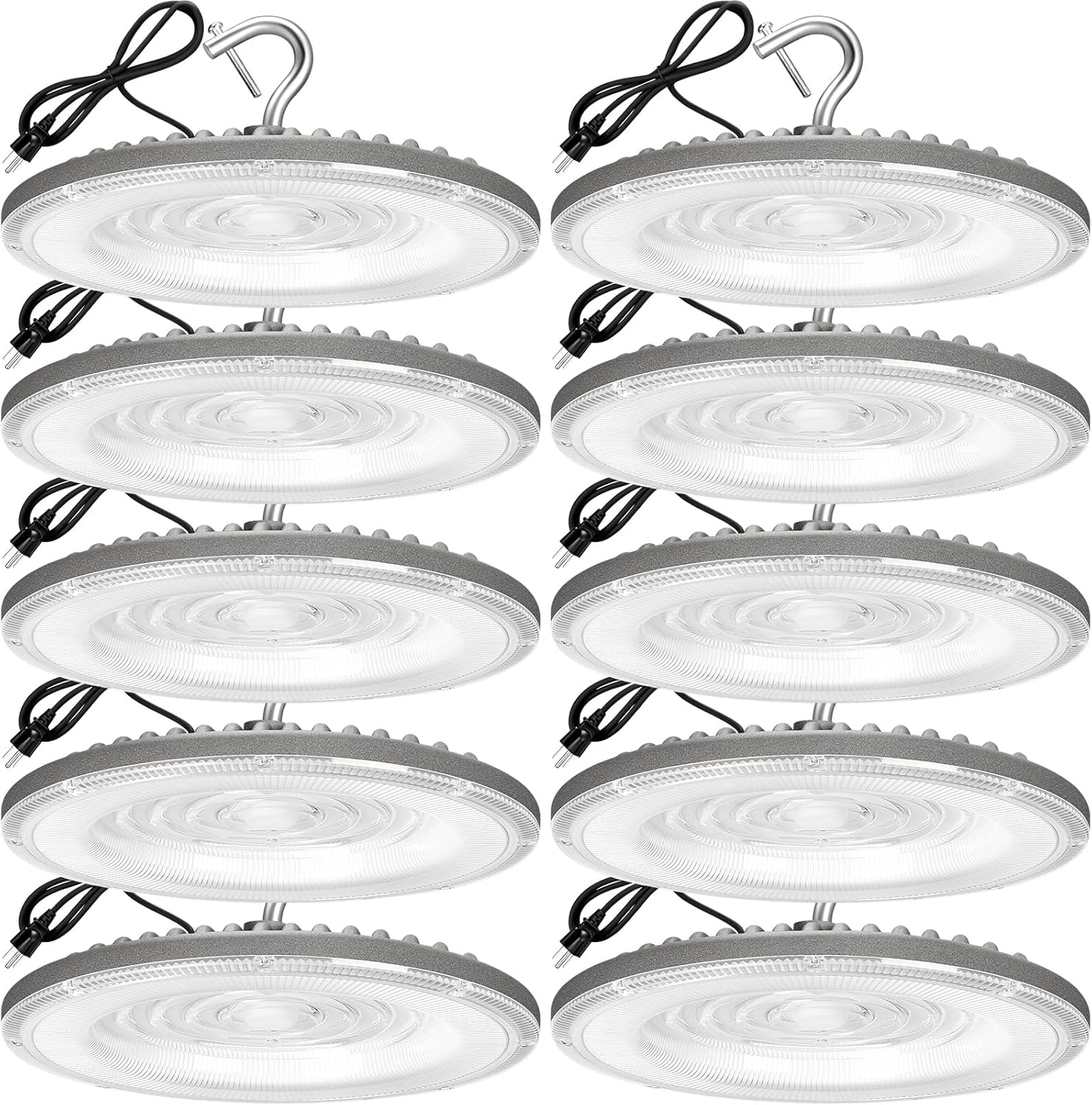 10 Pack 150W UFO Led High Bay Light,120VAC,5000K Daylight Commercial Bay Lighting,IP66 Waterproof,21050LM,650W MH/HPS with Plug Area Lighting for Warehouse/Shop/Workshop/Barn/Gym/Factory