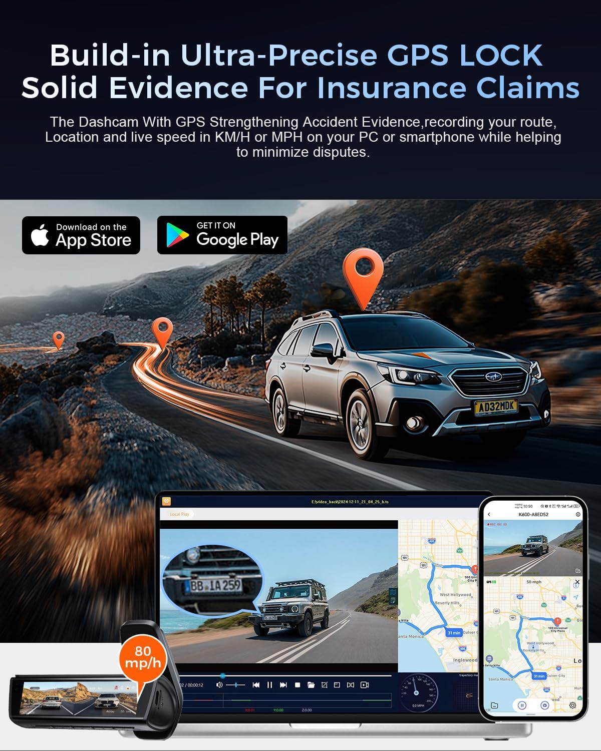 - 【Built-in GPS and Reliable Parking Surveillance】 That dash cams interior GPS records your vehicles lane drive route, speed, and location, providing vital data in case of an accident. The 24/7 parking mode keeps your car under monitor even when parked, offering peace of mind with continuous protection anti theft. Please note that this feature requires a hardware kit.(ASIN: B0D98CC7L8, not included). Suitable for semi truck, trucks, jeep, van, autos, suv, motorcycle.