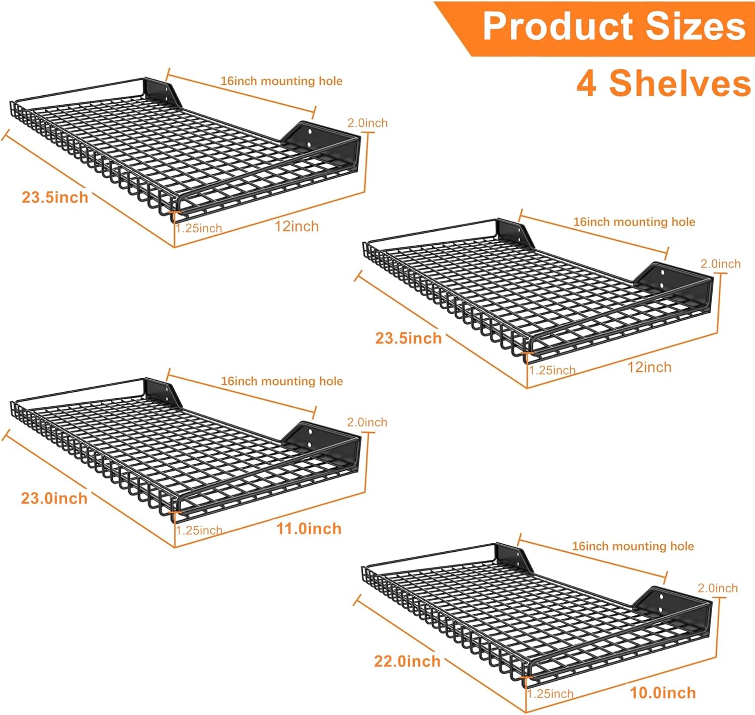 WALMANN Garage Wall Shelf, 4 Wall-Mounted Storage Shelves for Garage, Closet, Laundry Room, Heavy Duty Wall Shelving, Holds Up to 65 Lbs(Black, 4 Shelves)