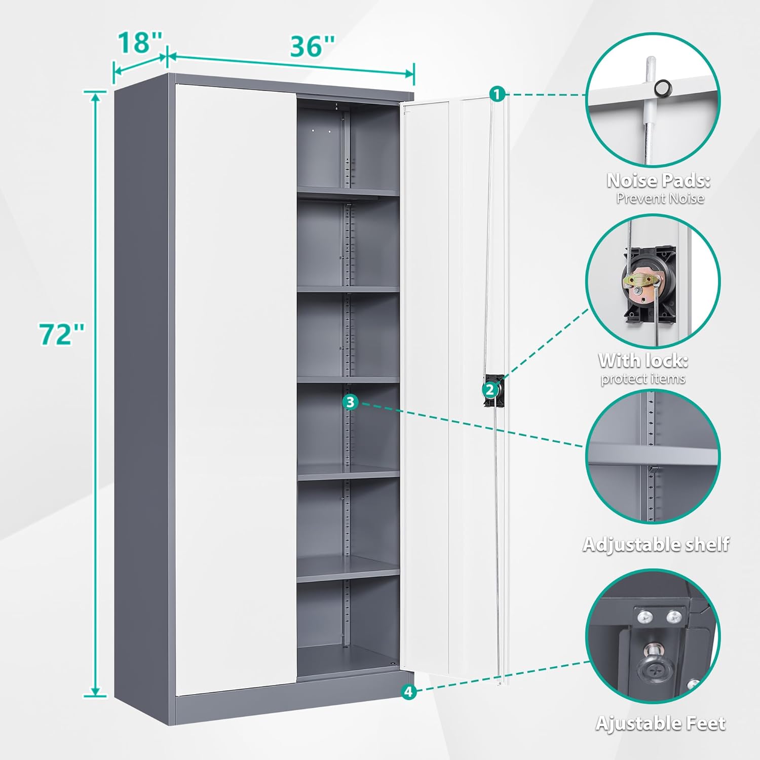 - ✔️☆【Bigger Size and 6 Tier Space】: Tall & Wide & Deep storage cabinet overall size: 72 inch×36 inch×18 inches (H x W x D). Metal storage cabinet has a strong and durable metal frame with excellent load-bearing capacity, allowing you to store enough items. Weight Capacity: 900 lbs total, the lockable storage cabinet has 5 adjustable shelves, each shelf holds: 180 lbs