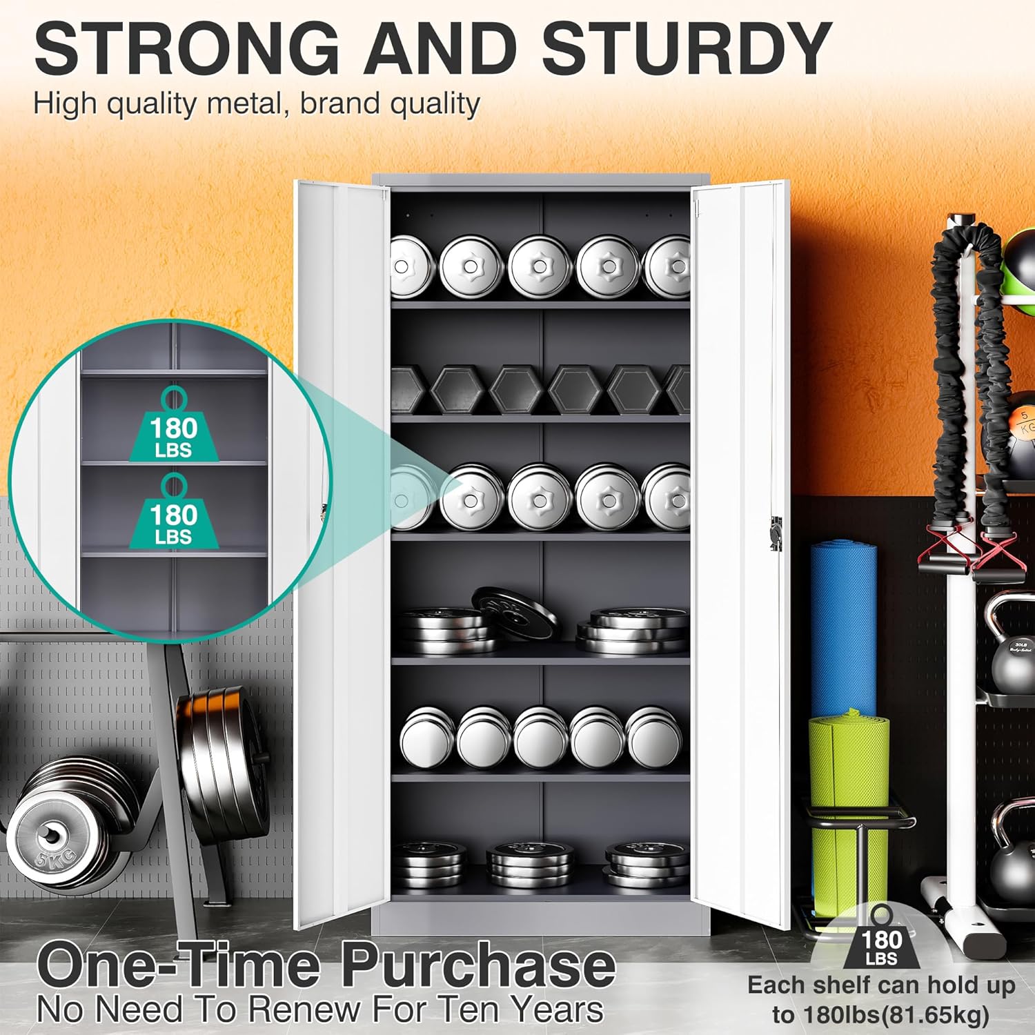- ✔️☆【Keep Door Closed with Lock and Magnets】: The storage cabinet with doors and shelves have a lockable door with 2 keys and adopt a 3-point locking system, which allows you to store your valuables safely. This metal storage cabinet with doors and shelves can be used in the home, office, garage, warehouse, workshop, school, or anywhere you need additional storage.