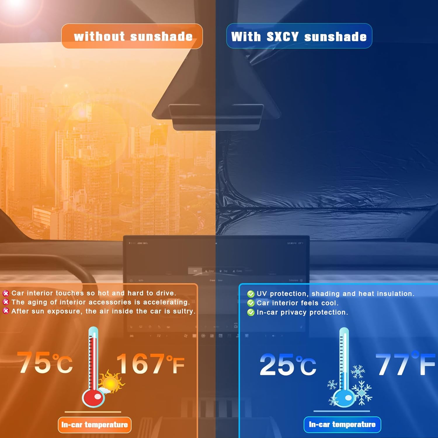 SXCY for 2024 2025 Tesla Cybertruck Windshield Sunshade for Tesla Cybertruck 2024 2025 Accessories 2025 Cybertruck Sunshade Foldable Sun Shield 2025 Cybertruck Sun Shade Sun Protector Block UV Rays