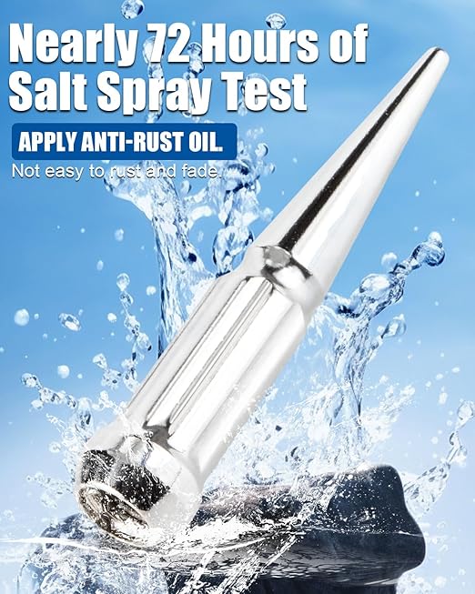 - Features - Our 14x1.5 chrome Spike lug nuts are made of high-quality steel. After plating and 72 hours of salt spray test, apply anti-rust oil. Does not rust and fade easily. The Solid one-piece design is safer than the two-piece design, preventing wheel nuts cracking and wheel drops.