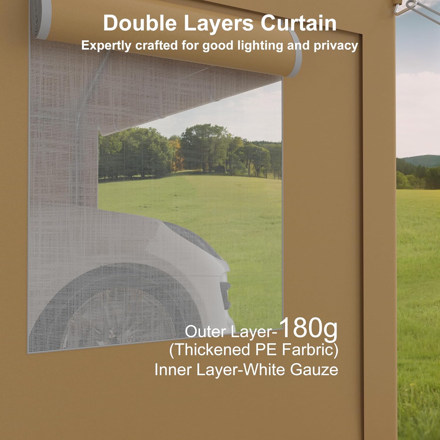 - - **All-Weather Protection**: Crafted with durable 180g PE fabric, this Portable Garage with 4 Doors & 4 Windows is UV-resistant, waterproof, and tear-resistant, providing year-round protection against sunlight, rain, wind, dust, hail, and snow.