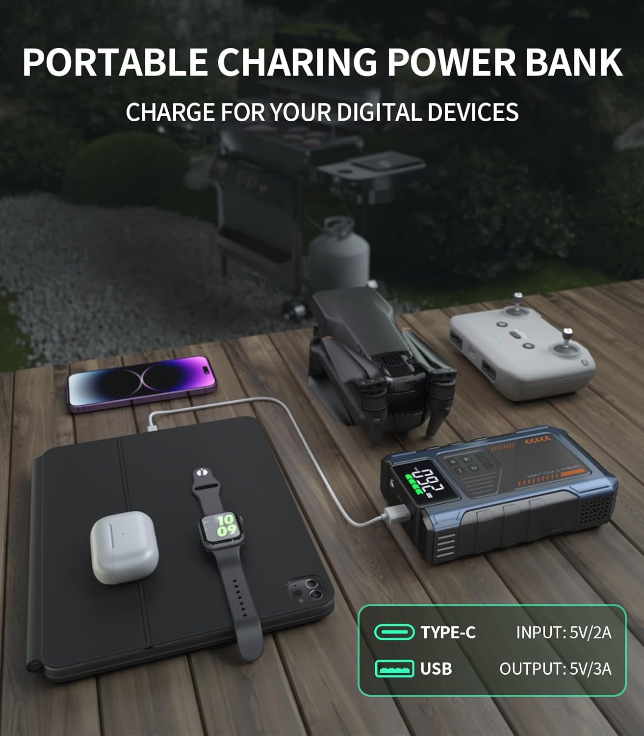 - VERSATILE POWERFUL JUMP STARTER - The jump box for car battery is a compact essential tool that features car emergency start, tire inflation, tire pressure detection, power bank and lighting function. With the jump box, you can easily handle roadside assistance such as dead battery or flat tire
