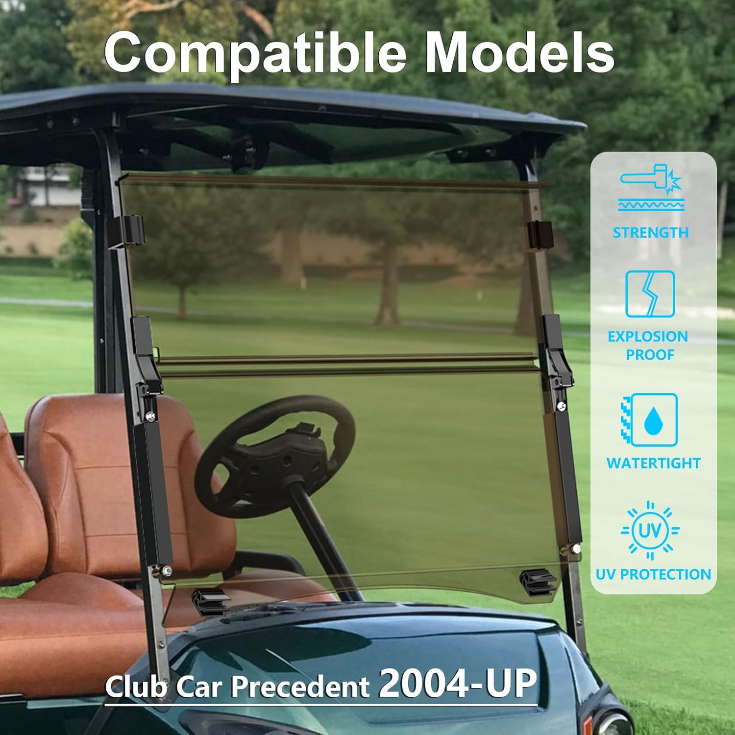 Club Car Precedent Windshield,Golf Cart Windshield for Precedent/Tempo/Onward (2004-Up)– Heavy Duty Hinges, Foldable, Anti-UV & Impact Resistant, 5MM Thick PC Material, 37.6"W X 33.2"H (tinted)